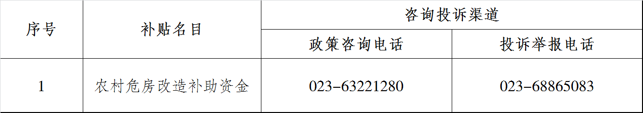 重庆市北碚区住房和城乡建设委员会惠民惠农资金咨询投诉渠道