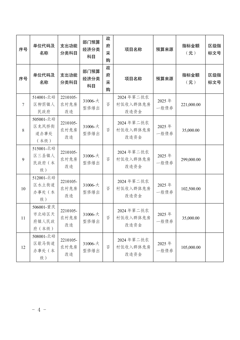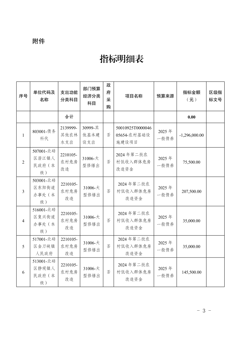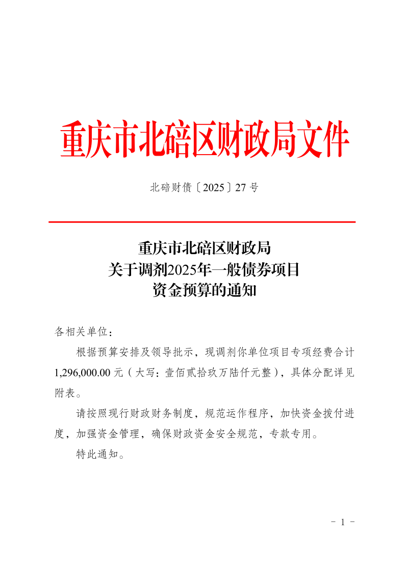 重庆市北碚区财政局关于调剂2025年一般债券项目资金预算的通知