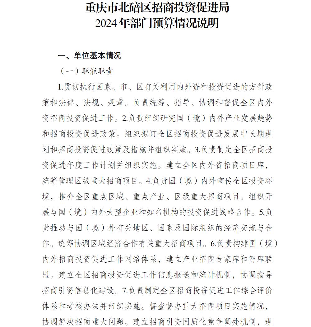 重庆市北碚区招商投资促进局2024年部门预算情况说明