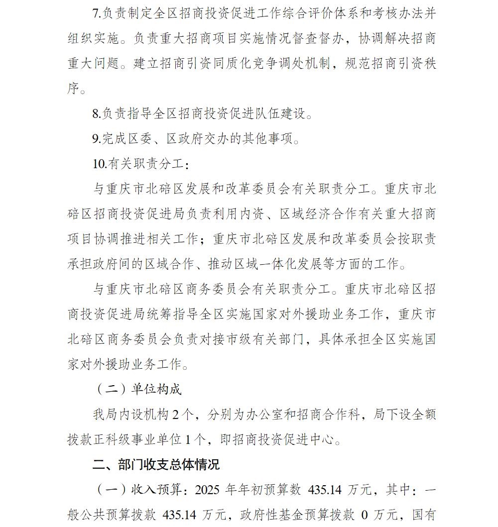重庆市北碚区招商投资促进局2025年部门预算情况说明