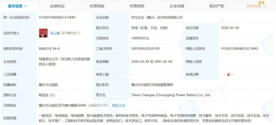 工商信息显示,时代长安(重庆)动力电池有限公司,法定代表人为朱云峰,属于宁德时代集团,由时代长安动力电池有限公司(简称:时代长安)全资持股。公司所属行业为制造业,经营范围包含电池制造、新兴能源技术研发、新材料技术研发、电子专用材料制造、工程和技术研究和试验发展等。
