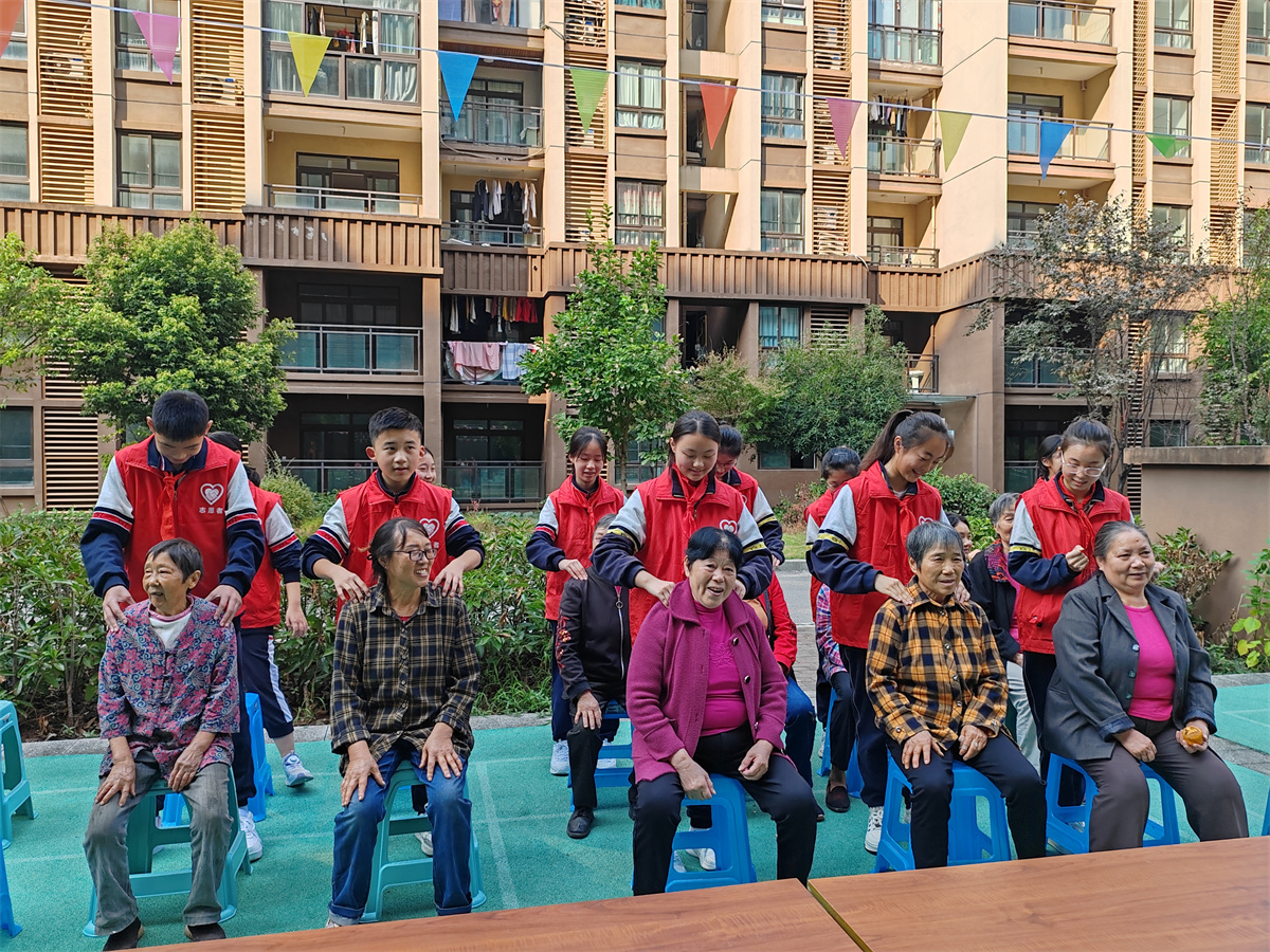 活动现场通过丰富多彩的学生文艺表演、知识讲座、集体祝寿、共话发展、志愿服务等形式,为老年人送去节日的祝福与暖心的关怀。