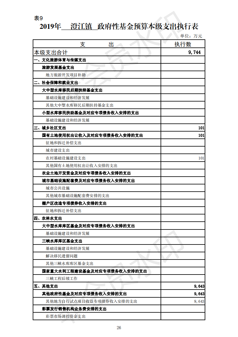 表10:2019年全镇政府性基金预算转移支付收支执行表
