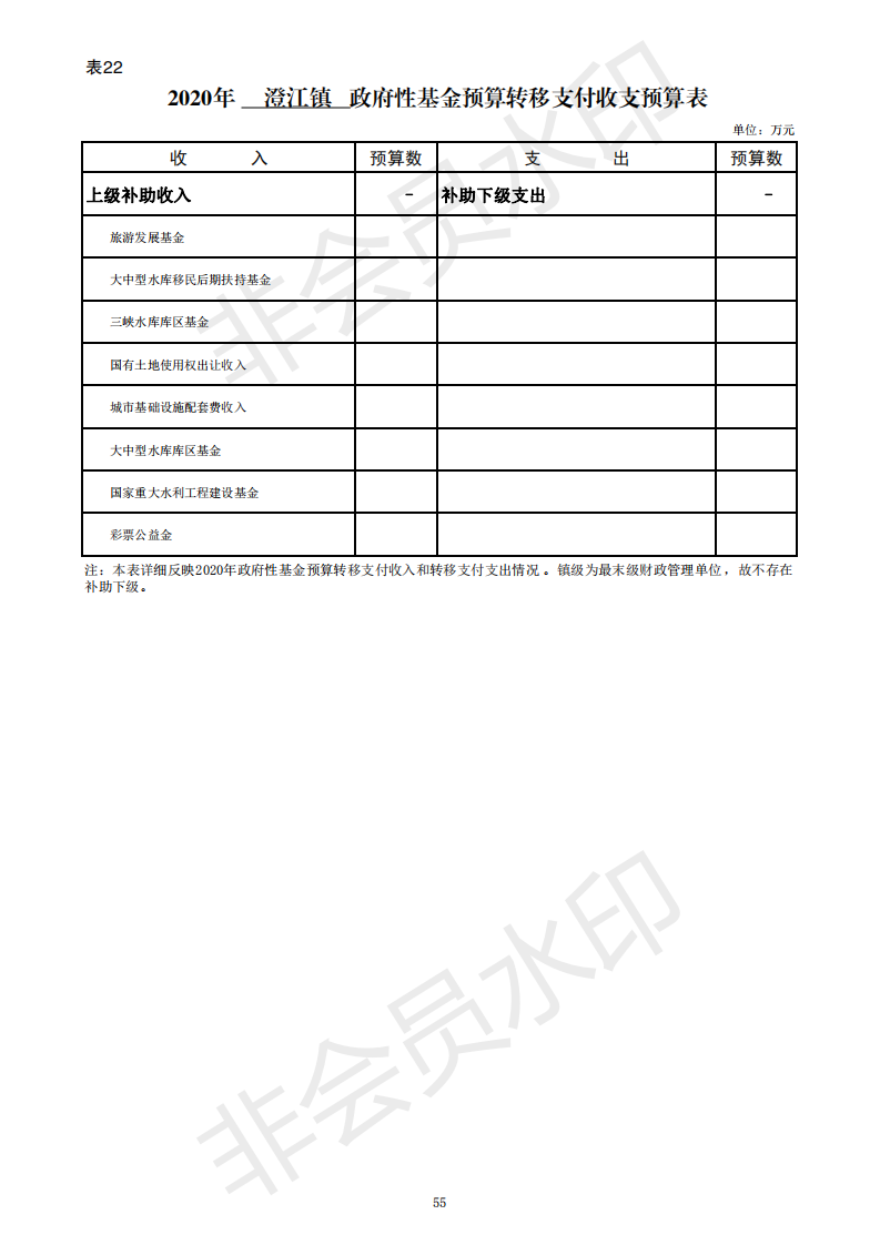 表22:2020年全镇政府性基金预算转移支付收支预算表
