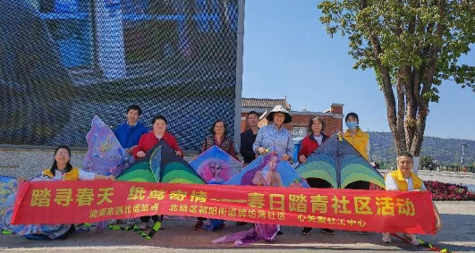 牌坊湾社区携手重庆心关爱社工中心、渝康家园北碚站点在正码头广场联合开展“踏寻春天 纸鸢寄情”的踏青主题活动。