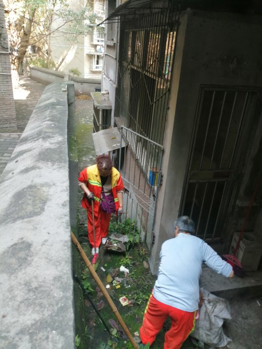 解放路社区组织环卫工人、居民对辖区背街小巷进行清理,为居民营造干净卫生的居住环境。