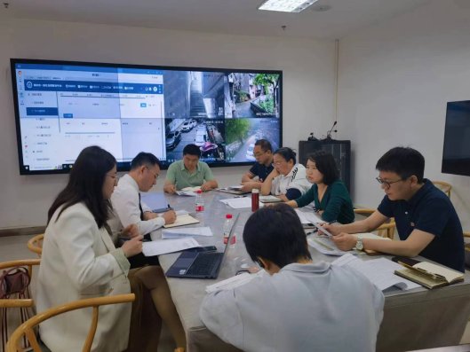 街道办事处主任陈放带队实地查看芦沟桥一号楼旁边坡,为后续整治摸清情况。