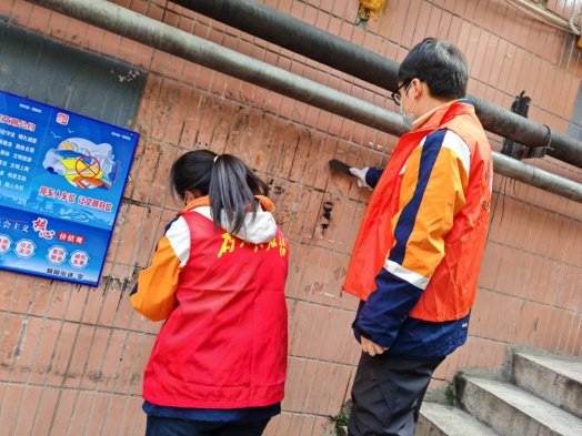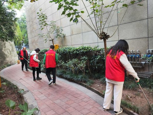 大明社区与北碚第三税务局党员志愿者开展环境保护志愿服务活动,为辖区居民营造整洁优美的居住环境。