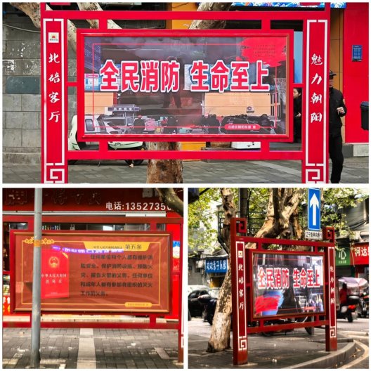 朝阳街道在解放路、辽宁路路口人员密集区域设立以“全民消防 生命至上”为主题的宣传引导牌,营造人人学习消防,全民参与消防的良好氛围。