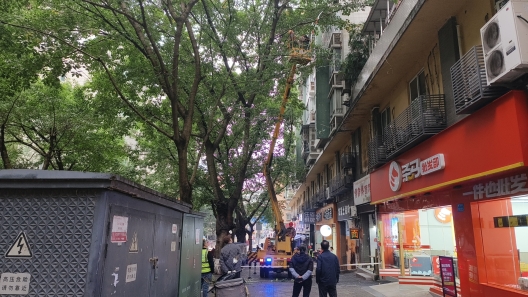 牌坊湾社区联动区城市管理局修剪行道树多余枝干,消除安全隐患。