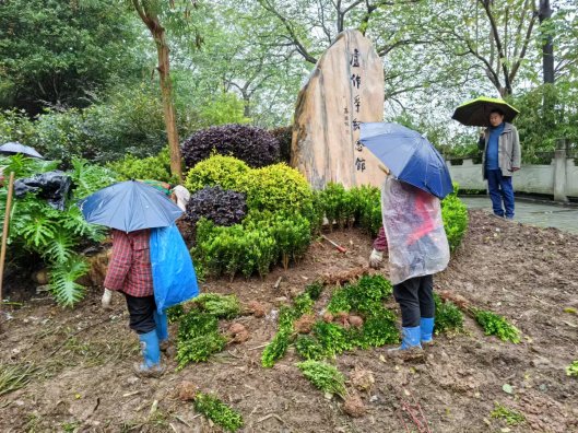 街道组织人员补绿卢作孚纪念馆周边绿化带并整修纪念馆至嘉陵江边步道栏杆。