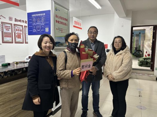 街道民生服务板块工作人员同大明社区工作人员共同慰问辖区百岁老人,为其家属送上慰问金和鲜花并祝福老人健康长寿,营造辖区浓厚的人文关怀氛围。