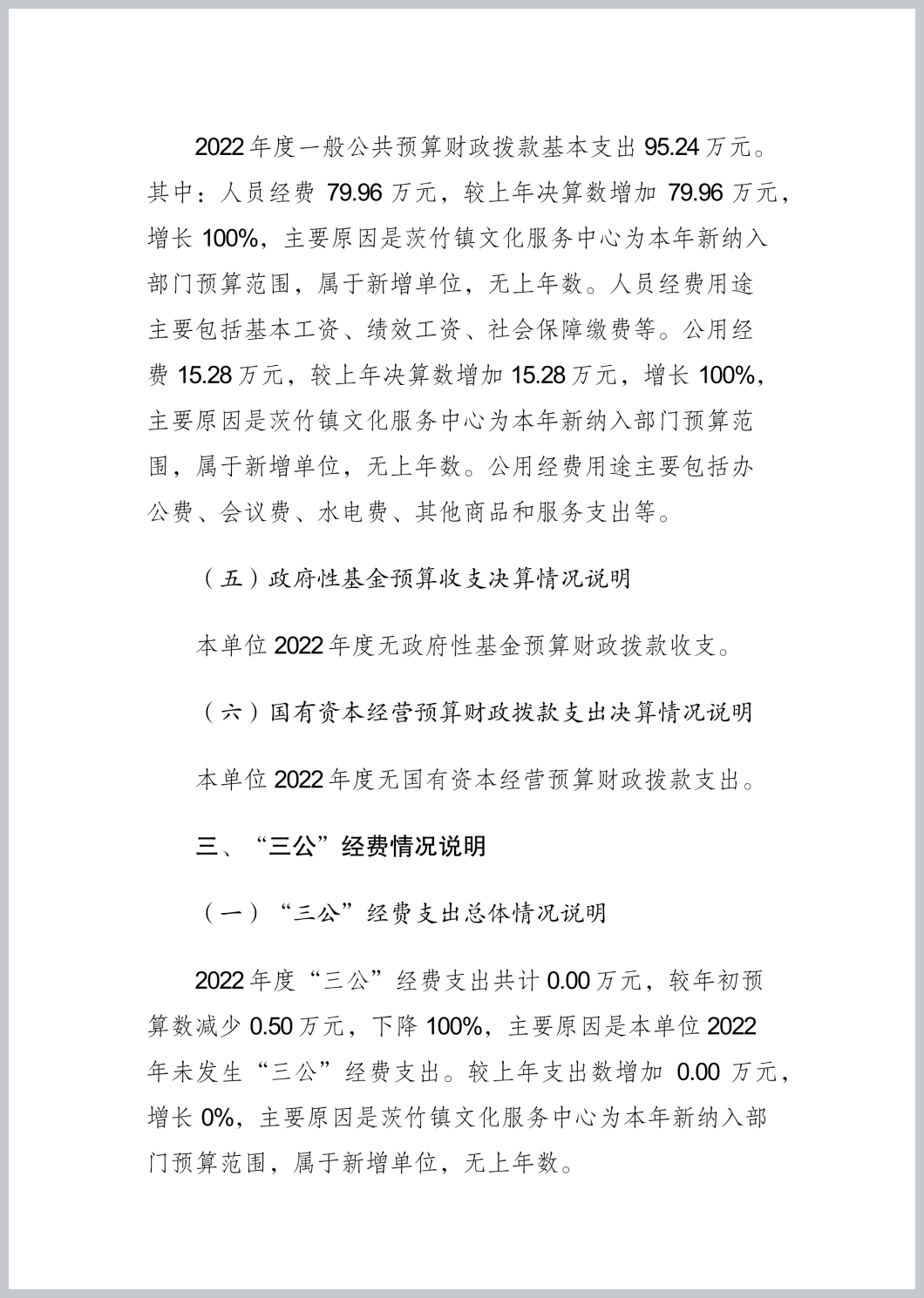 重庆市渝北区茨竹镇文化服务中心2022年部门决算公开