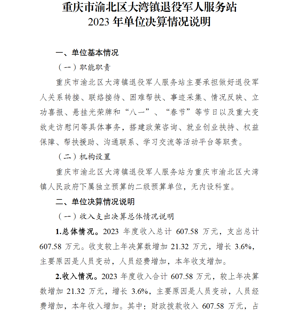 重庆市渝北区大湾镇退役军人服务站2023年单位决算情况说明及附表.pdf