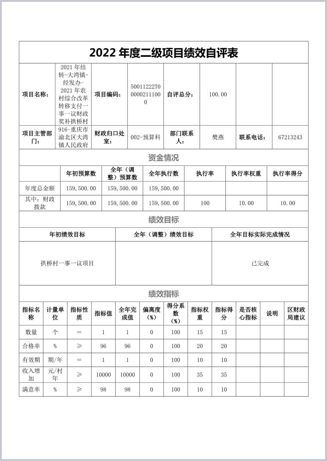 重庆市渝北区大湾镇人民政府(本级)2022年部门决算公开