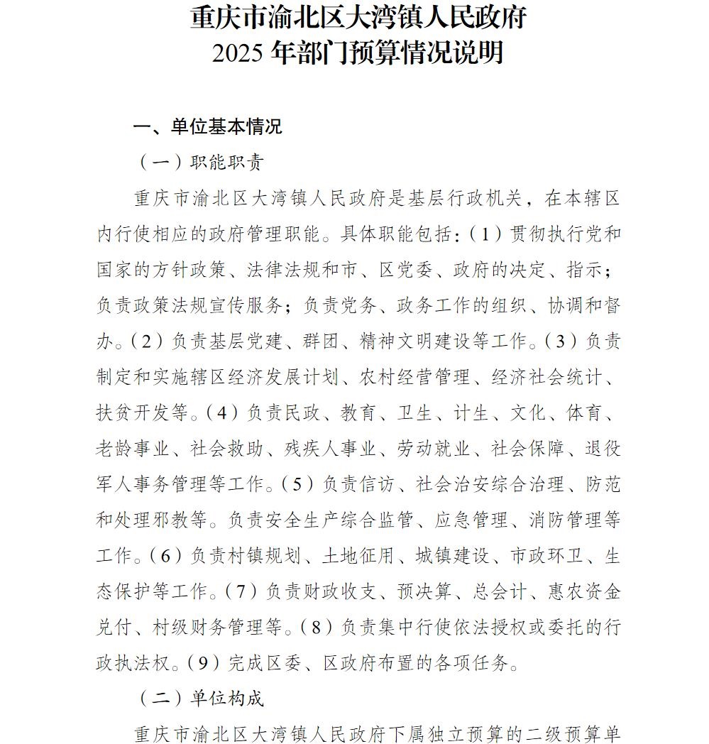 重庆市渝北区大湾镇人民政府2025年部门预算情况说明