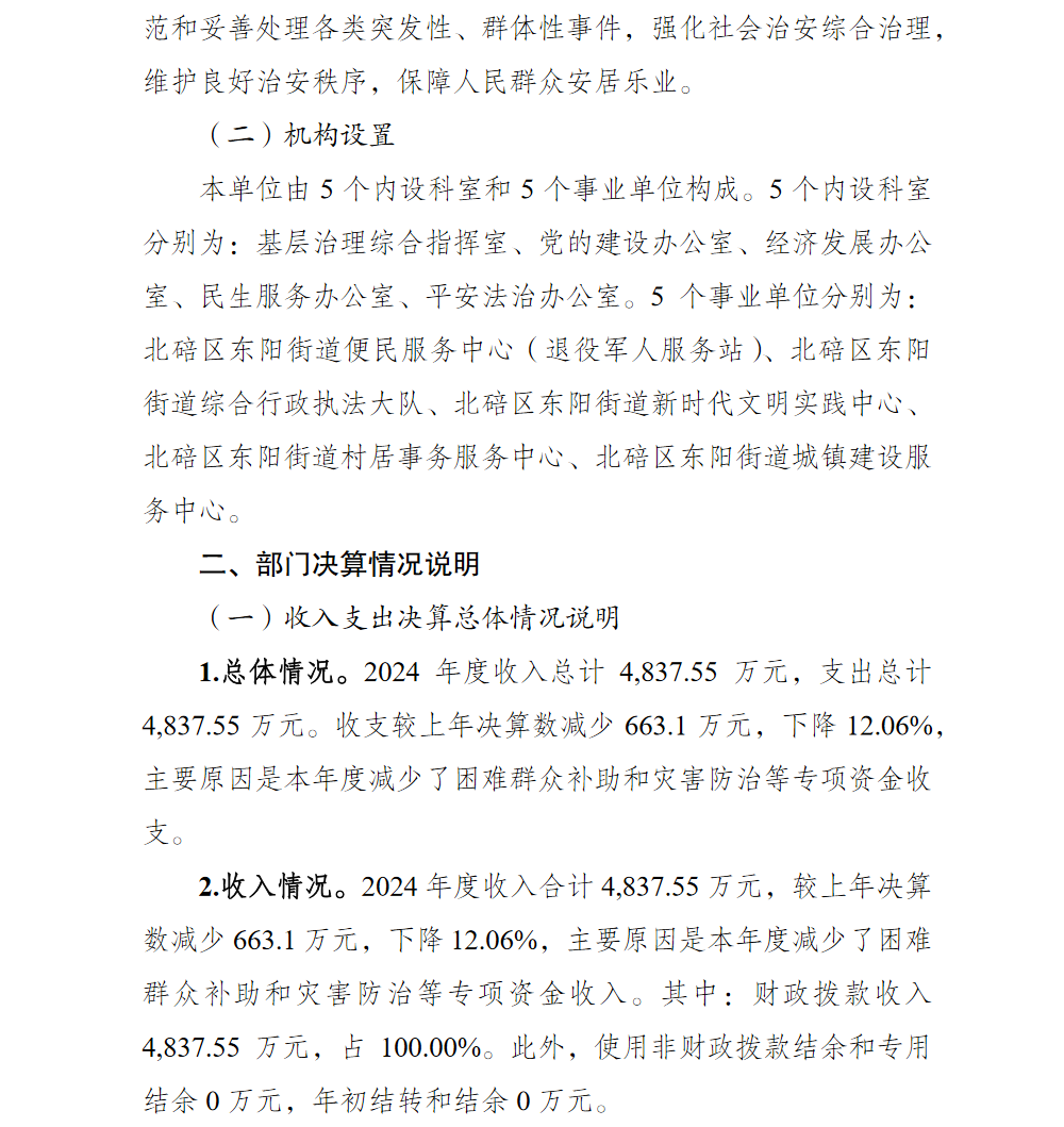 重庆市北碚区人民政府东阳街道办事处2024年度部门决算情况说明