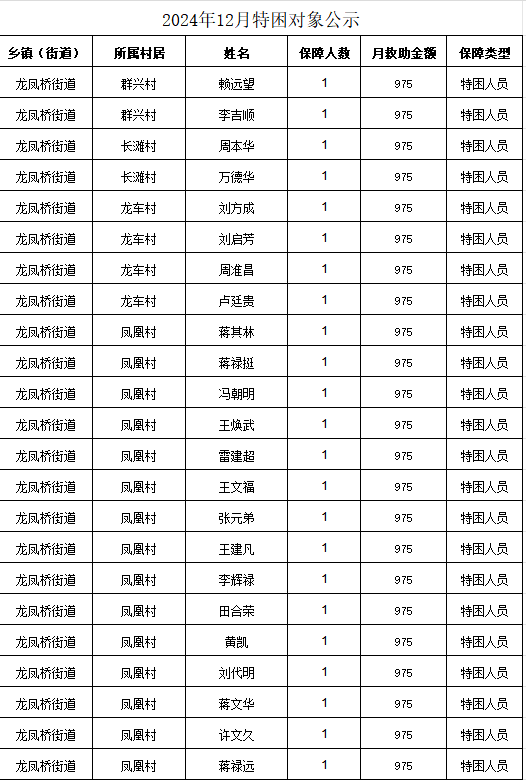 2024年12月特困对象公示