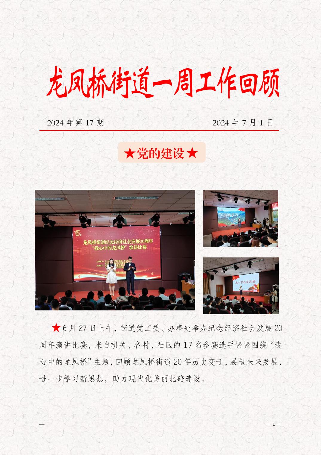 龙凤桥街道一周工作回顾 2024年第17期