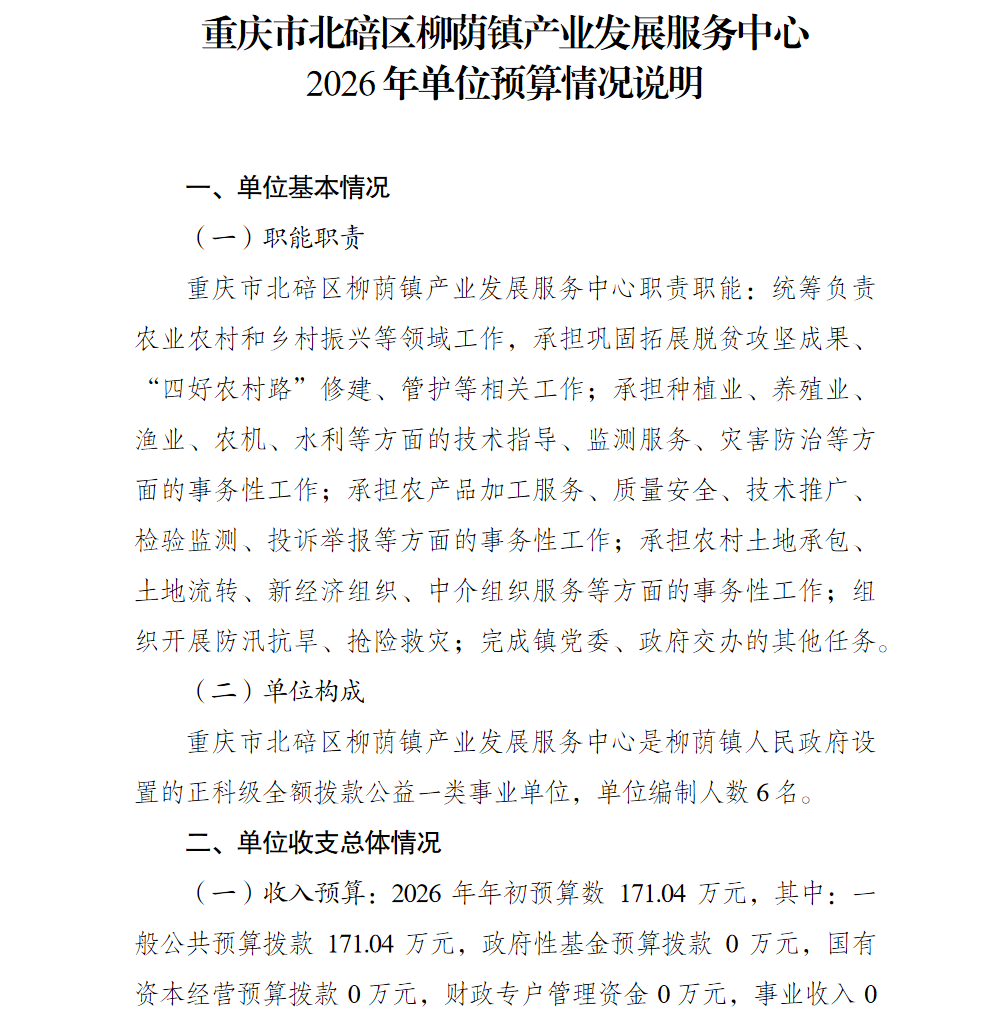 重庆市北碚区柳荫镇产业发展服务中心2026年单位预算情况说明及附表.pdf