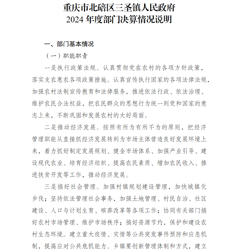 重庆市北碚区三圣镇人民政府2024年部门决算情况说明