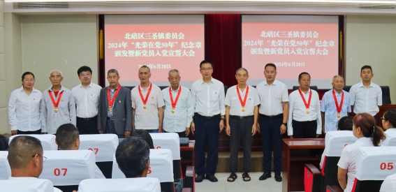 在中国共产党成立103周年之际,三圣镇党委于6月28日举办了一场庄重的纪念活动——“光荣在党50年”纪念章颁发暨新党员入党宣誓大会。此次活动不仅是对老党员们无私奉献的崇高礼赞,更是对全镇党员的一次深刻教育和激励。