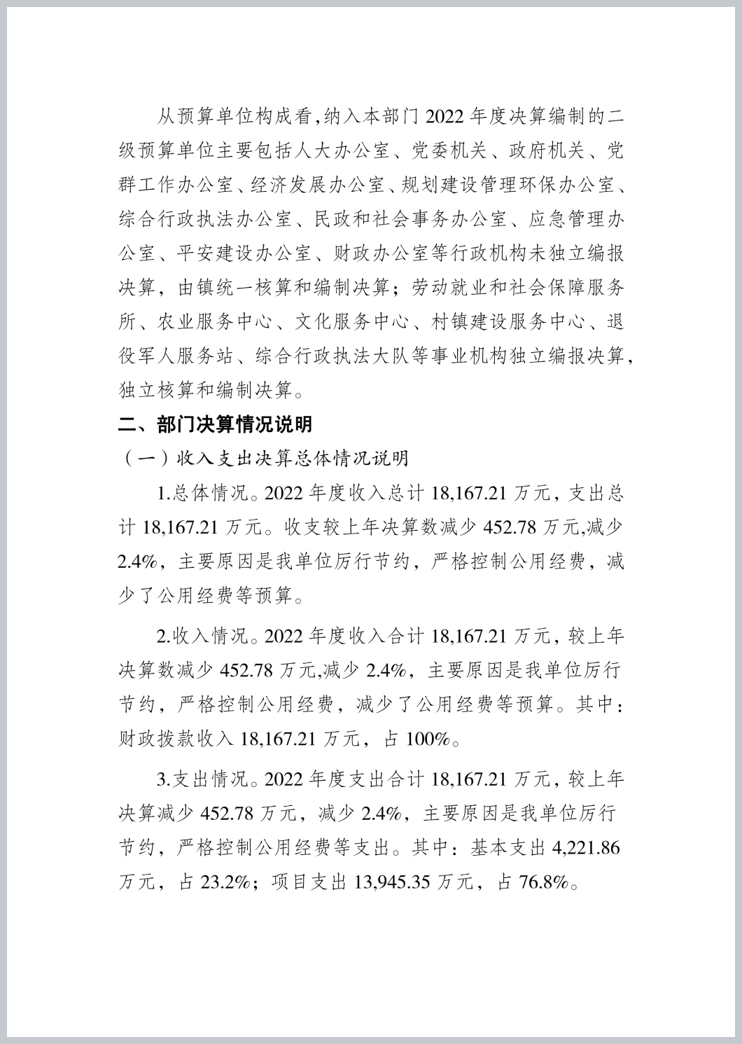重庆市渝北区统景镇人民政府2022年部门决算公开