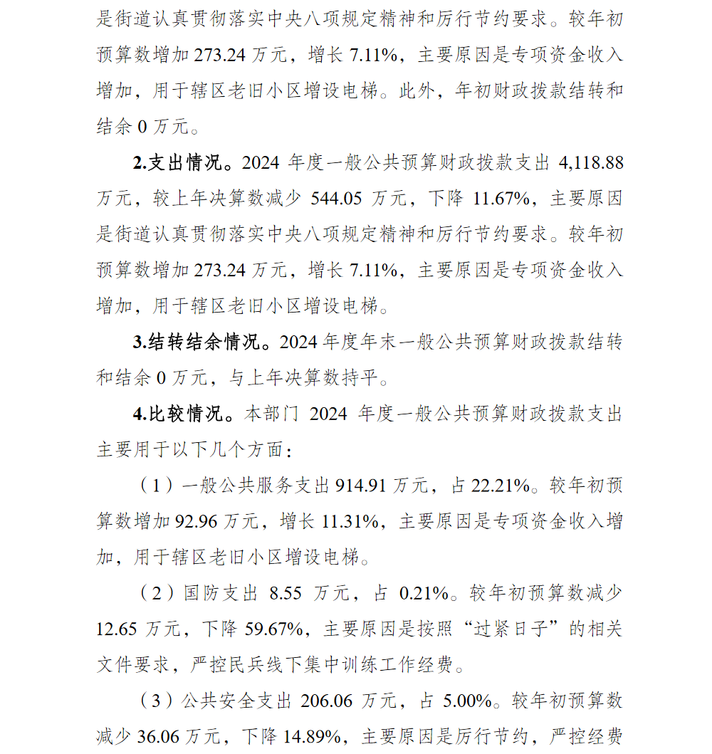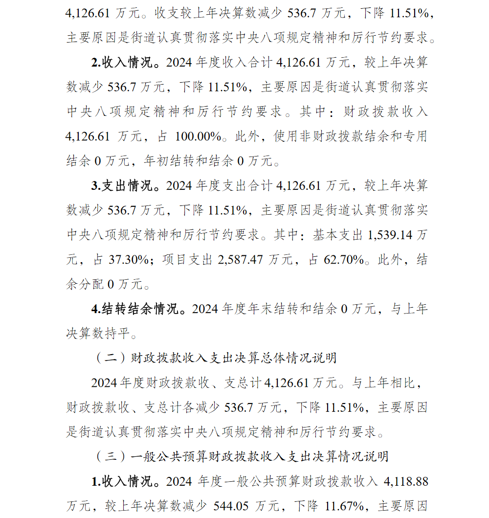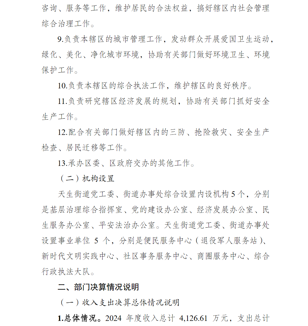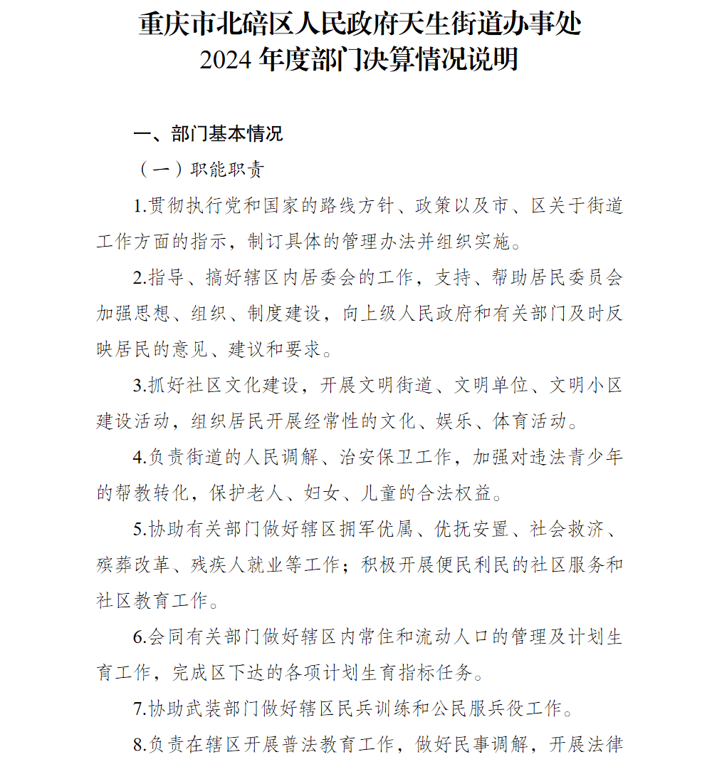 重庆市北碚区人民政府天生街道办事处2024年度部门决算情况说明