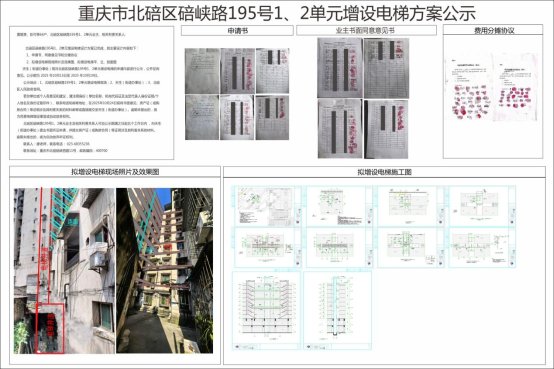 重庆市北碚区碚峡路195号1、2单元增设电梯方案公示
