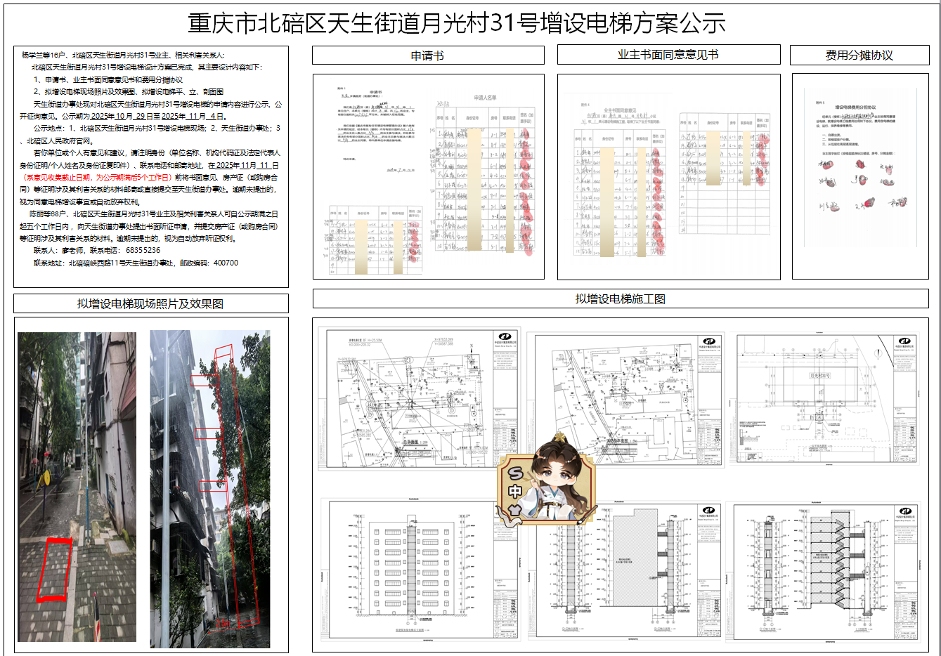 重庆市北碚区天生街道月光村31号增设电梯方案公示