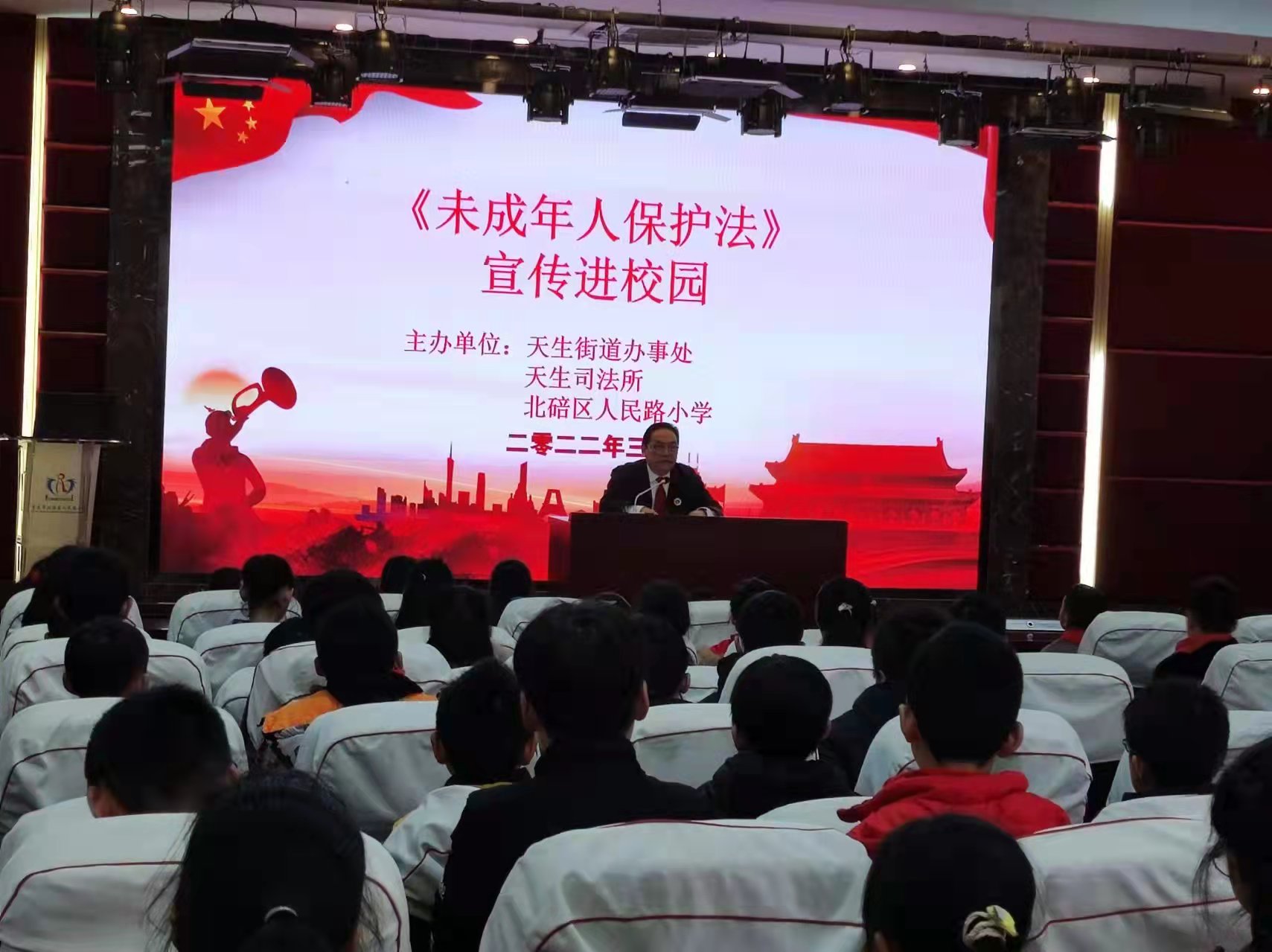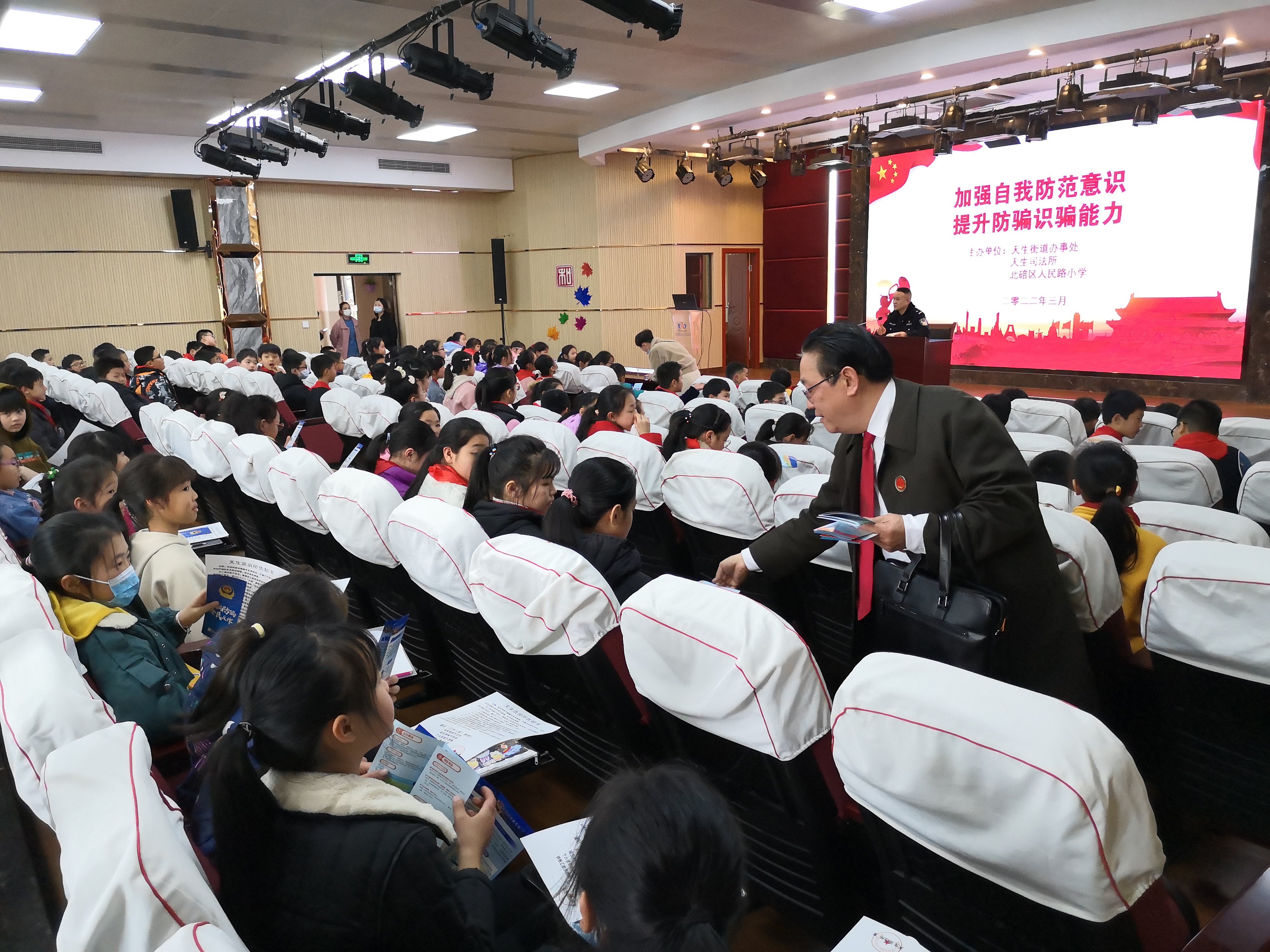 为进一步弘扬和传承雷锋精神和“奉献、友爱、互助、进步”的志愿服务精神,倡导社会文明新风,深化新时代文明实践“讲法律”志愿服务工作。3月4日,天生街道携手辖区基层法律服务工作者和公安派出所民警中的普法志愿者走进北碚区人民路小学,共同举办送法进校园公益普法讲座。200余名师生认真聆听讲座并与主讲人进行互动,进一步提升未成年人法律意识,强化校园安全。