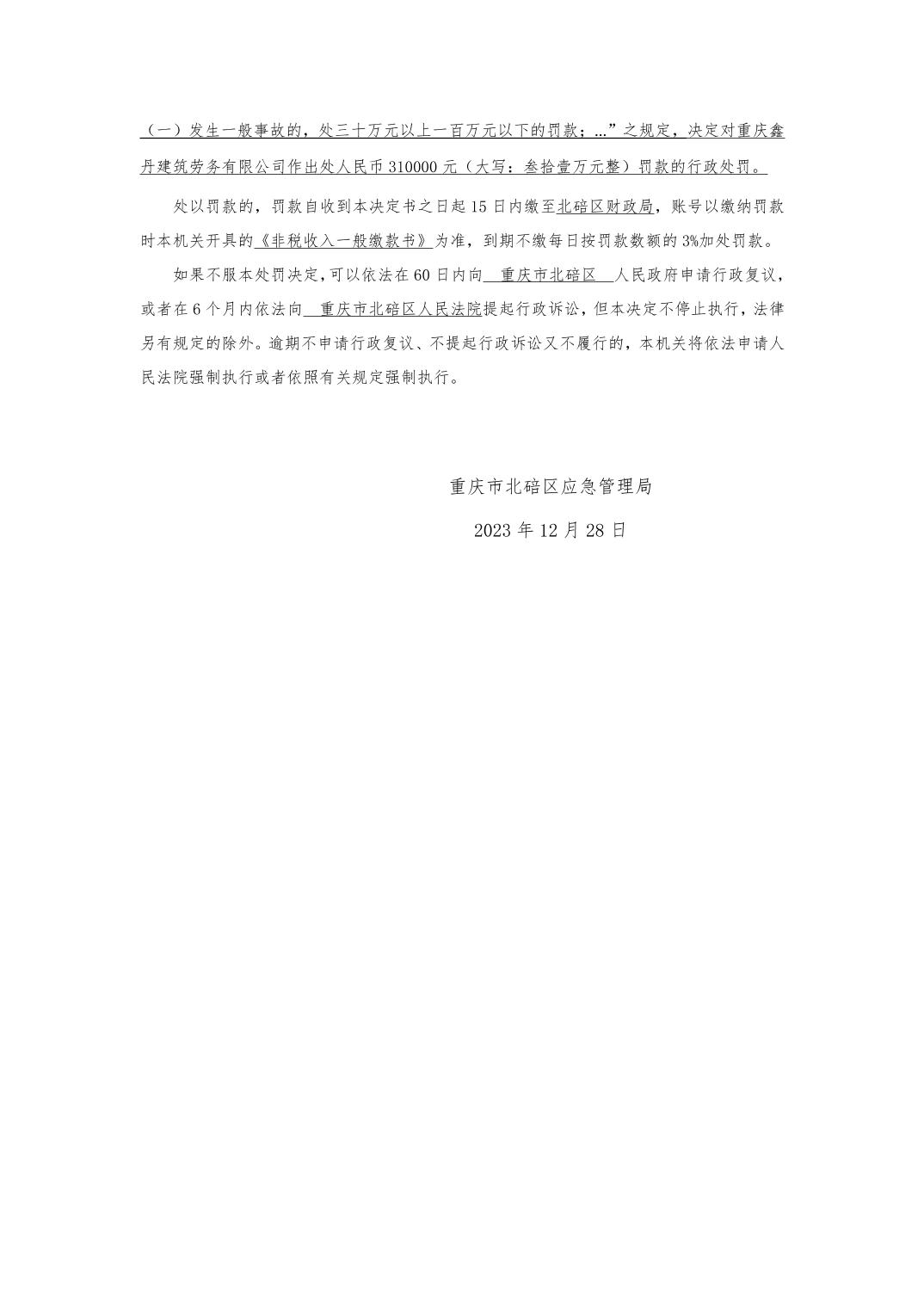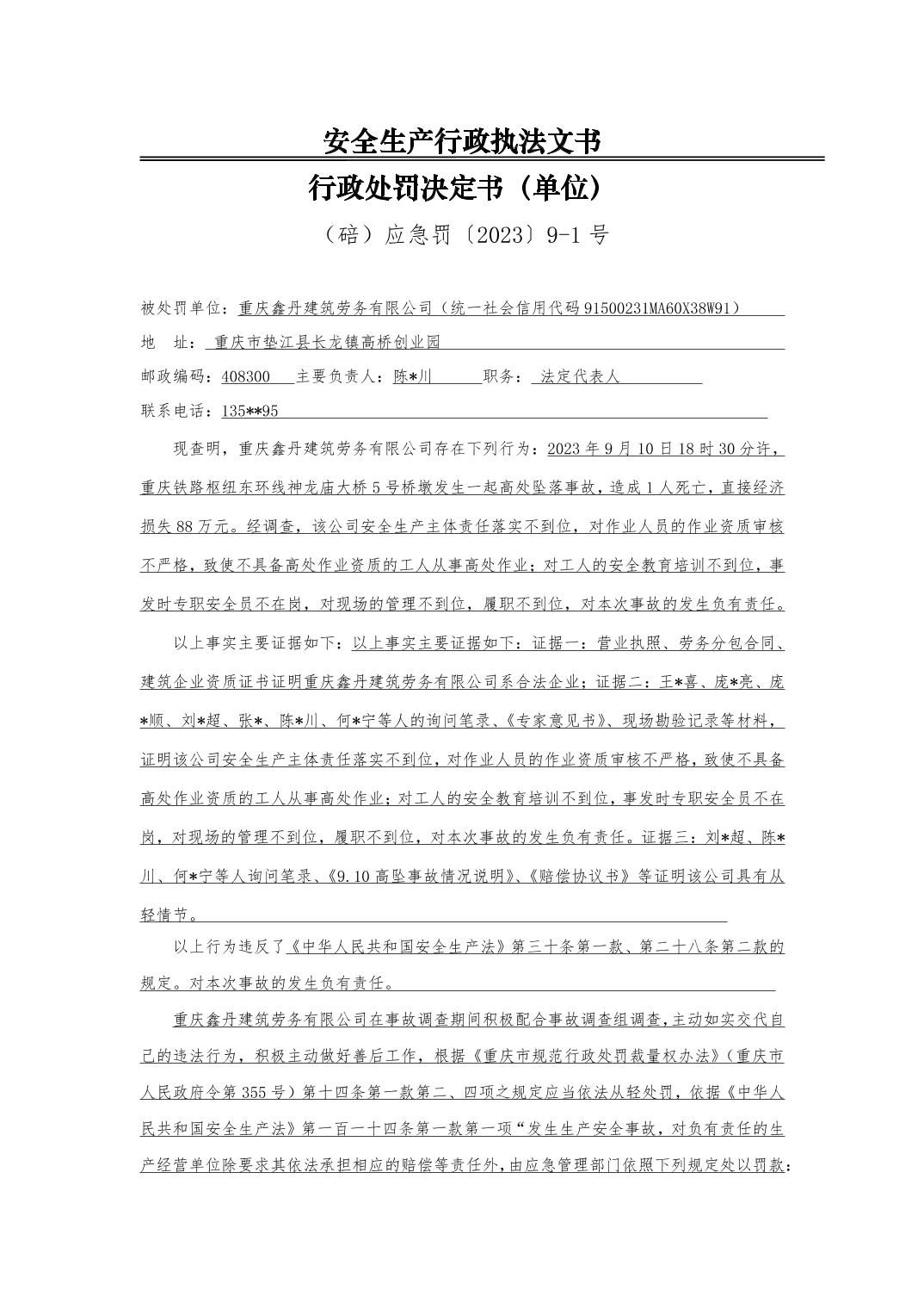 行政处罚决定书(鑫丹建筑劳务有限公司)