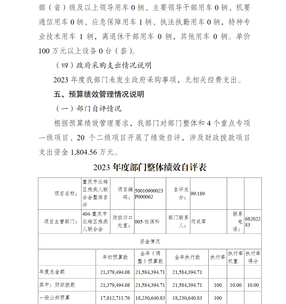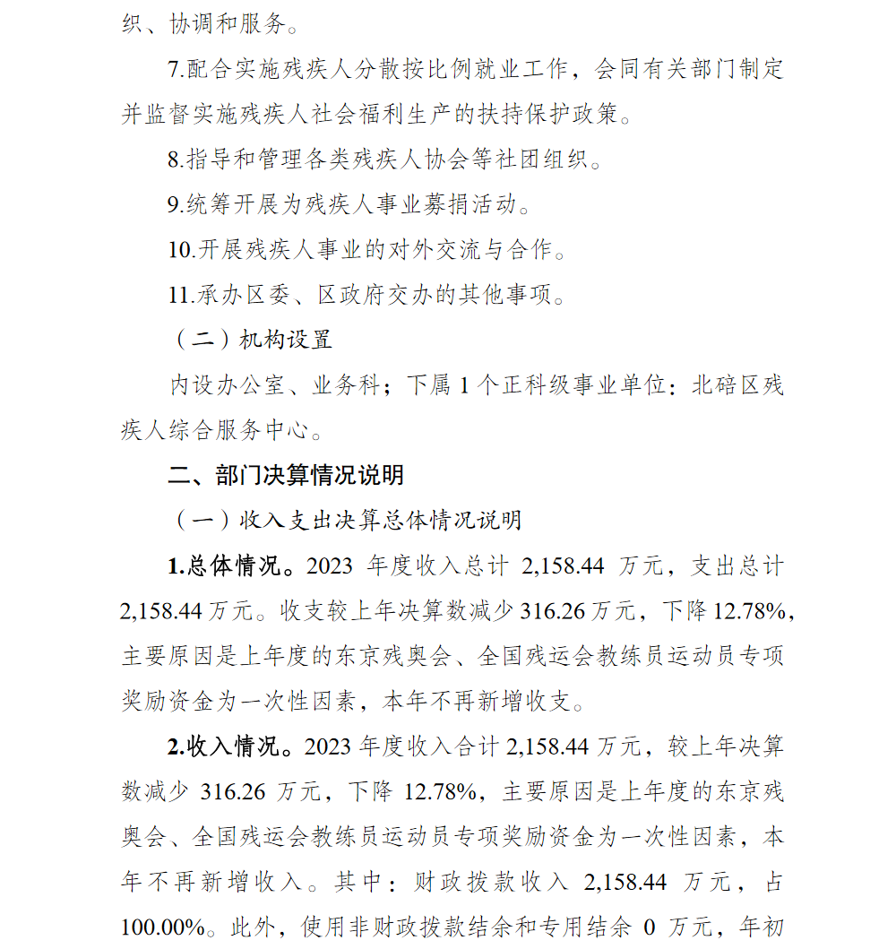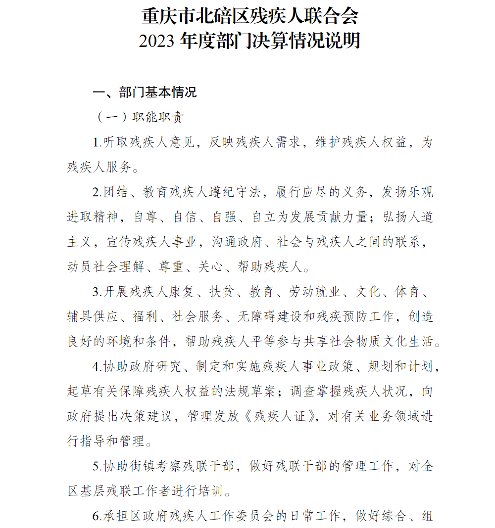 重庆市北碚区残疾人联合会2023年部门决算情况说明及附表.pdf