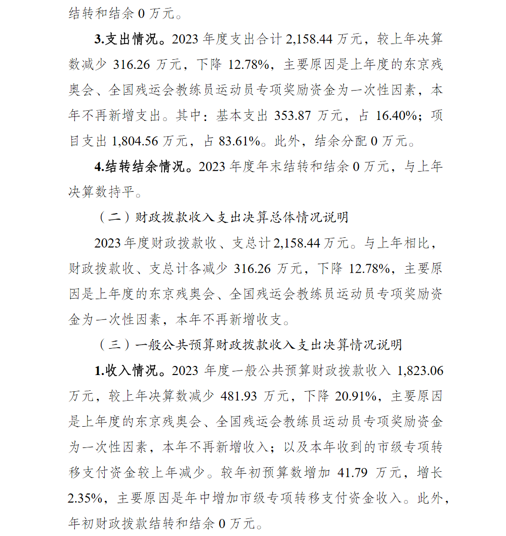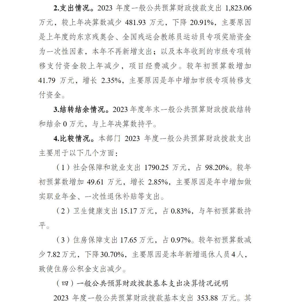 重庆市北碚区残疾人联合会2023年度部门决算情况说明