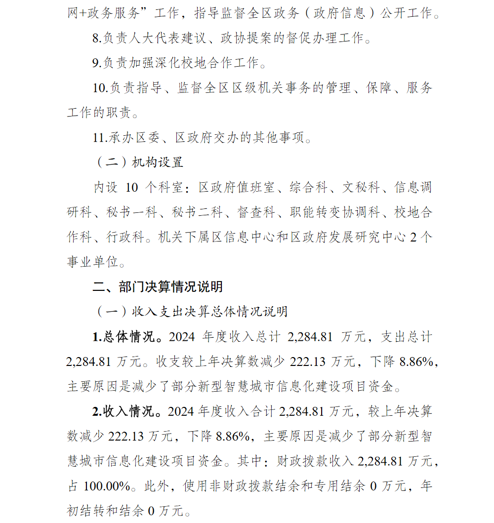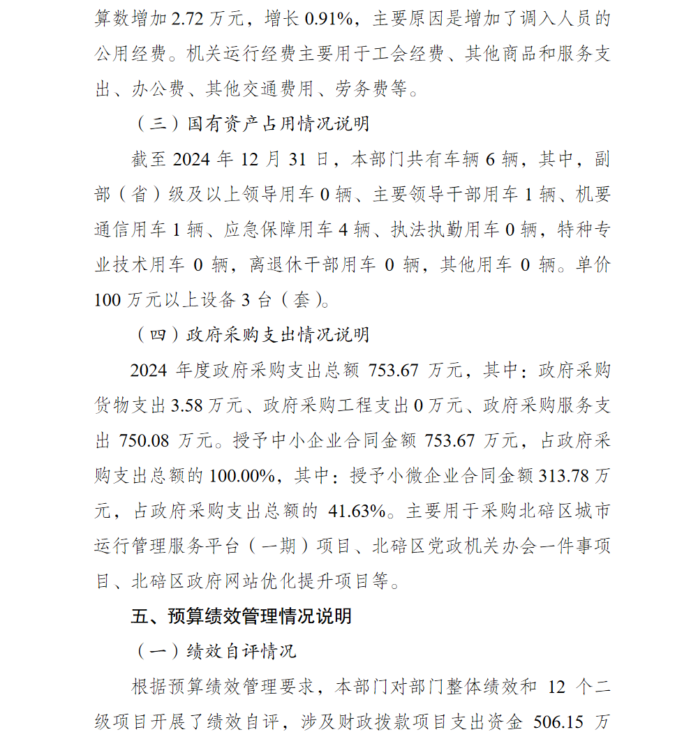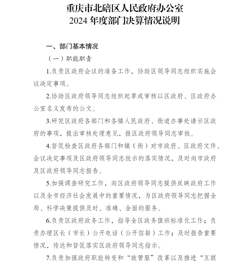 重庆市北碚区人民政府办公室2024年部门决算情况说明