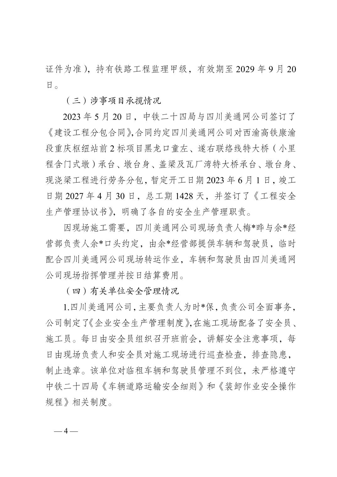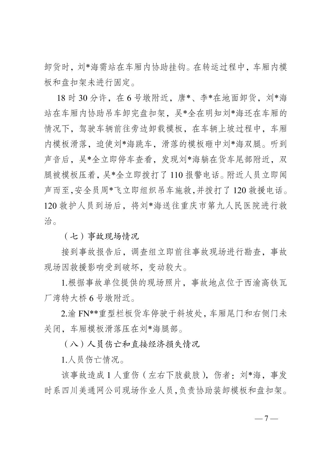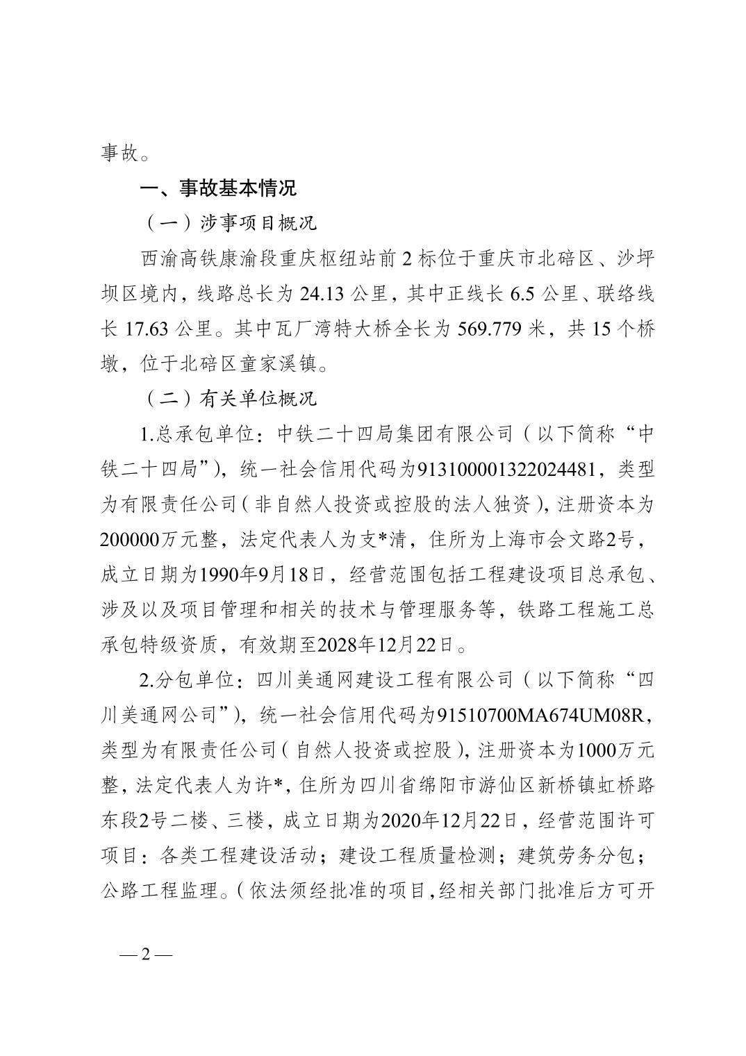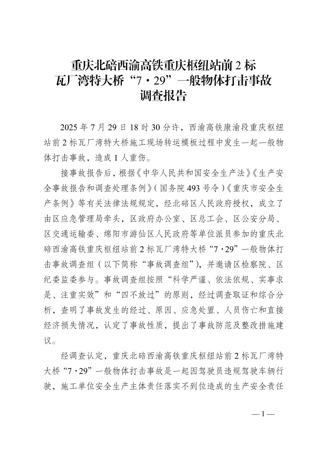 重庆北碚西渝高铁重庆枢纽站前2标瓦厂湾特大桥“7·29”一般物体打击事故调查报告