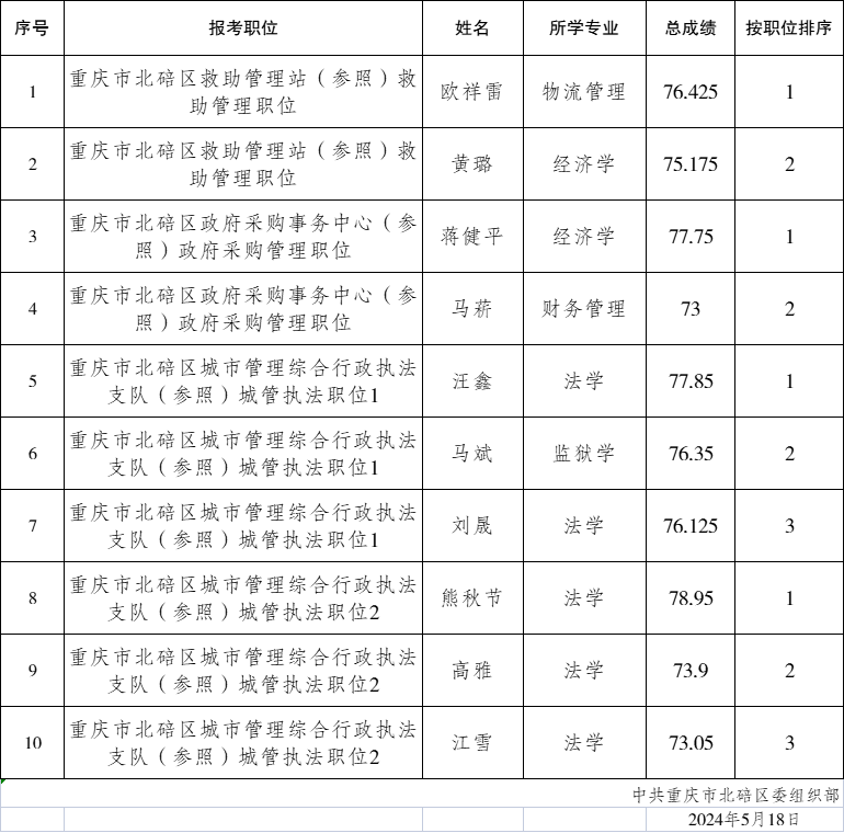 重庆市北碚区2024年公开遴选公务员考察对象公布表