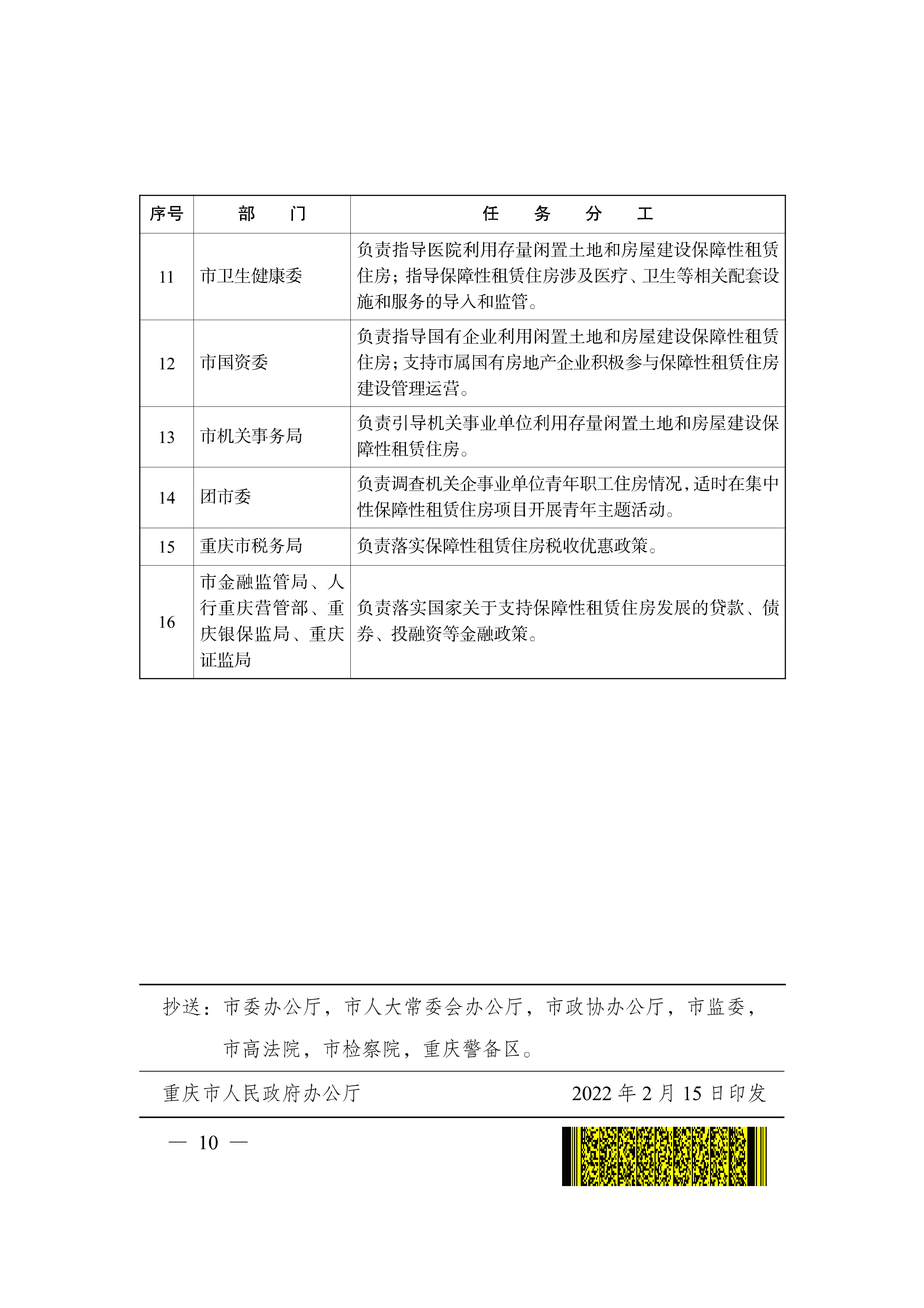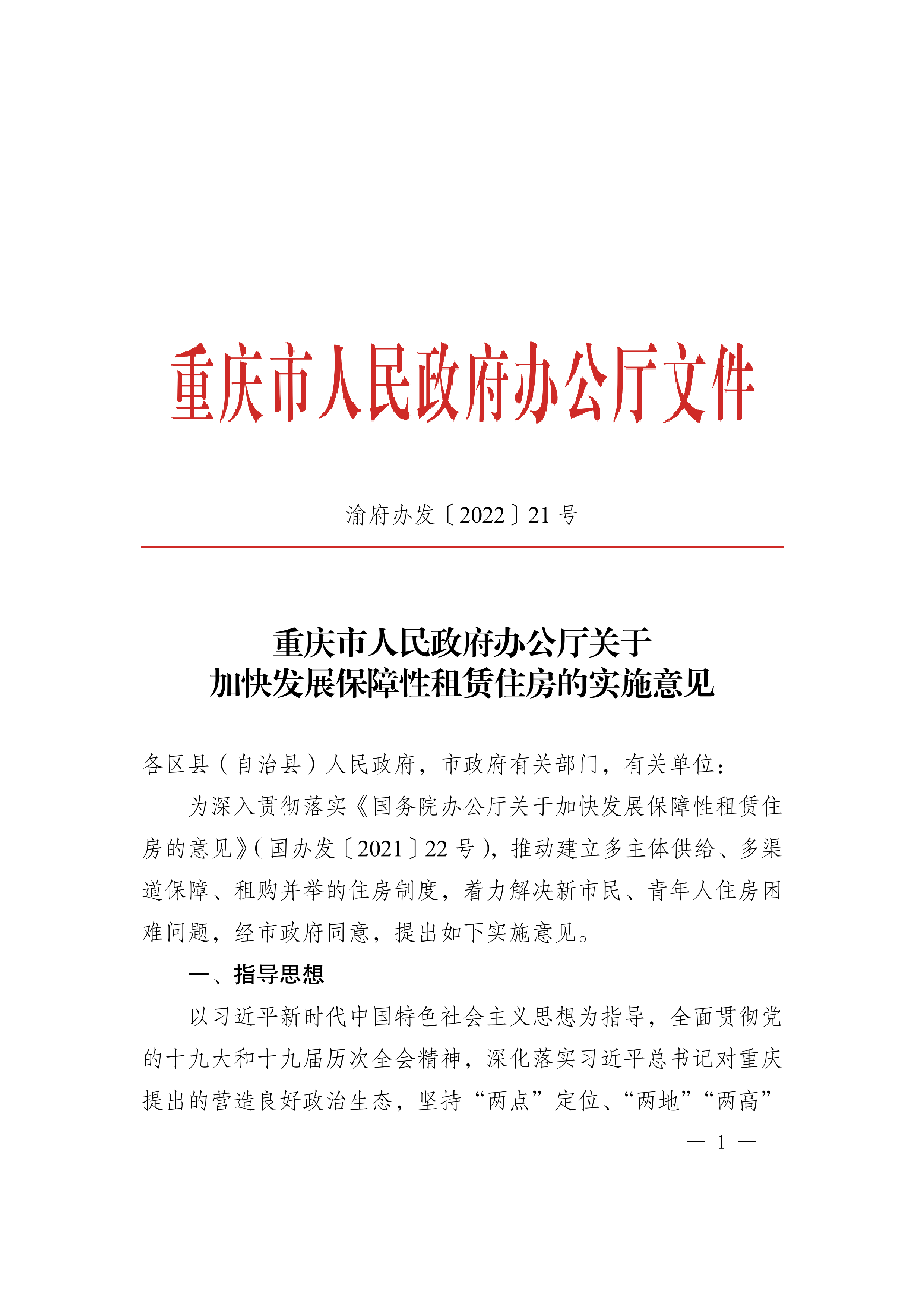 重庆市人民政府办公厅关于加快发展保障性租赁住房的实施意见