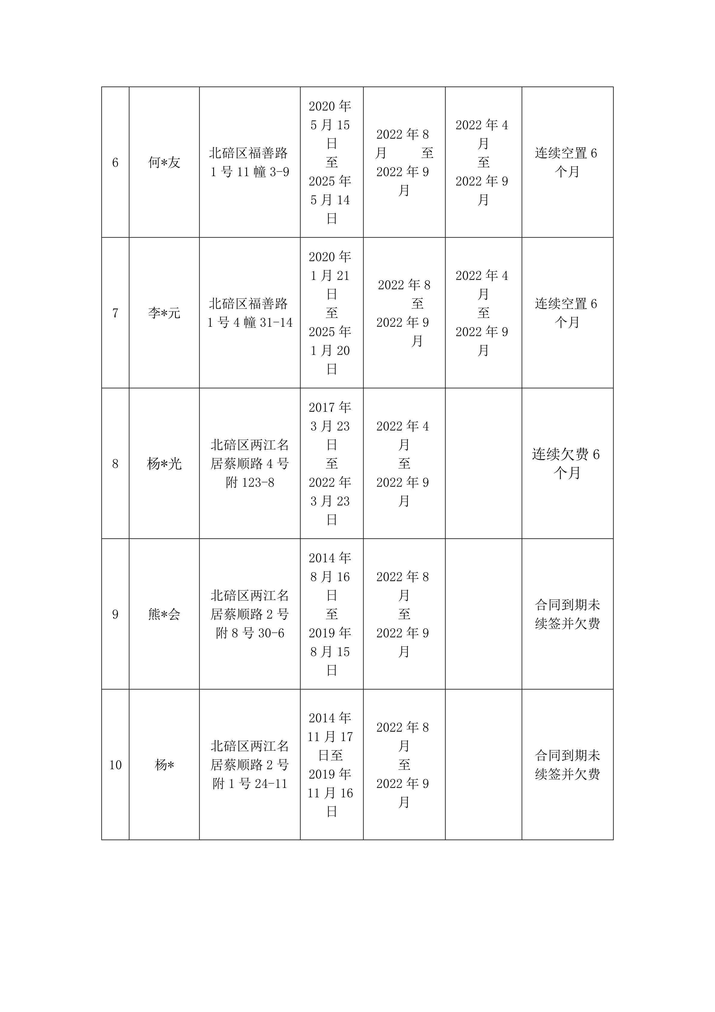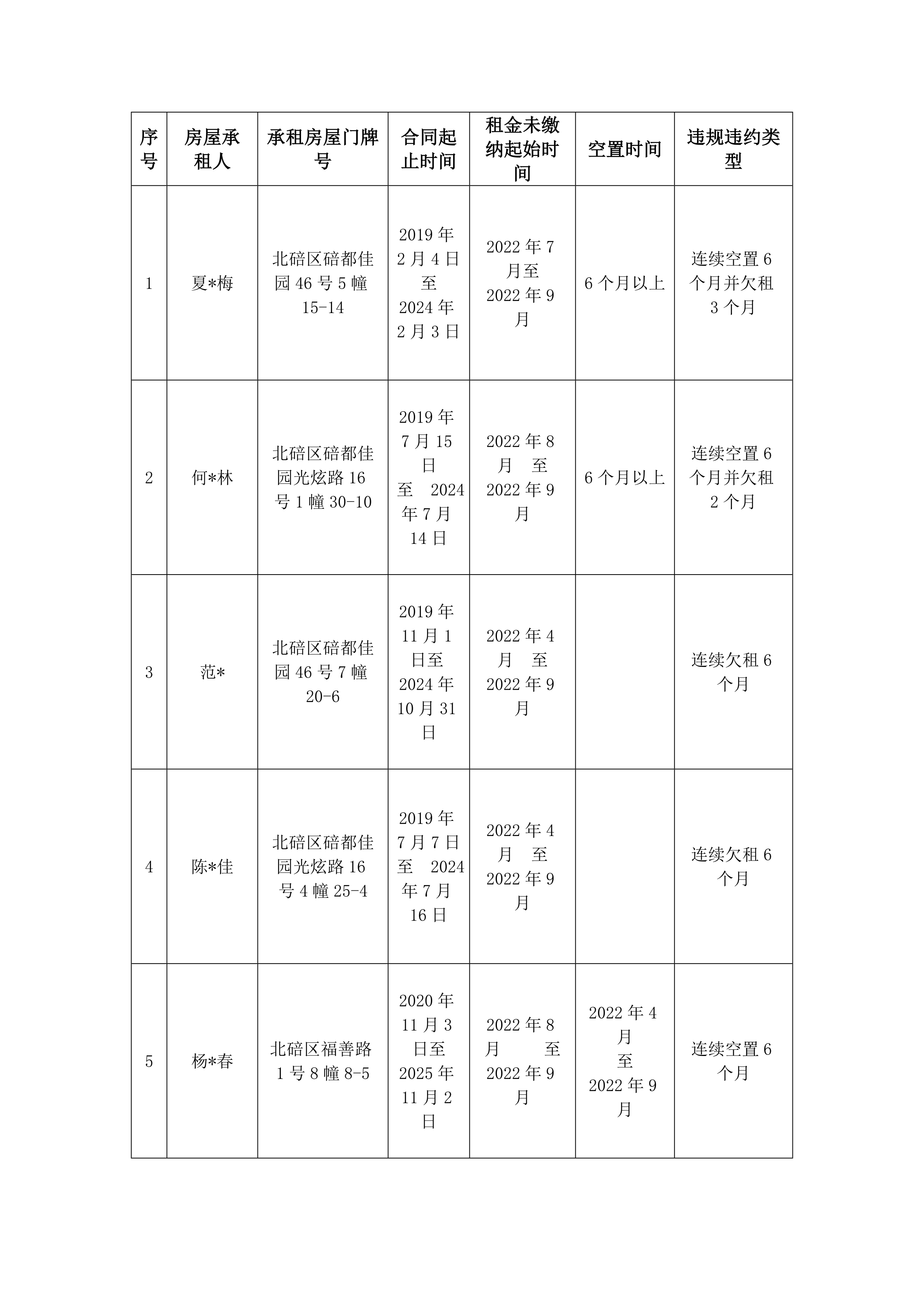 北碚区2022年公租房违规违约清理情况