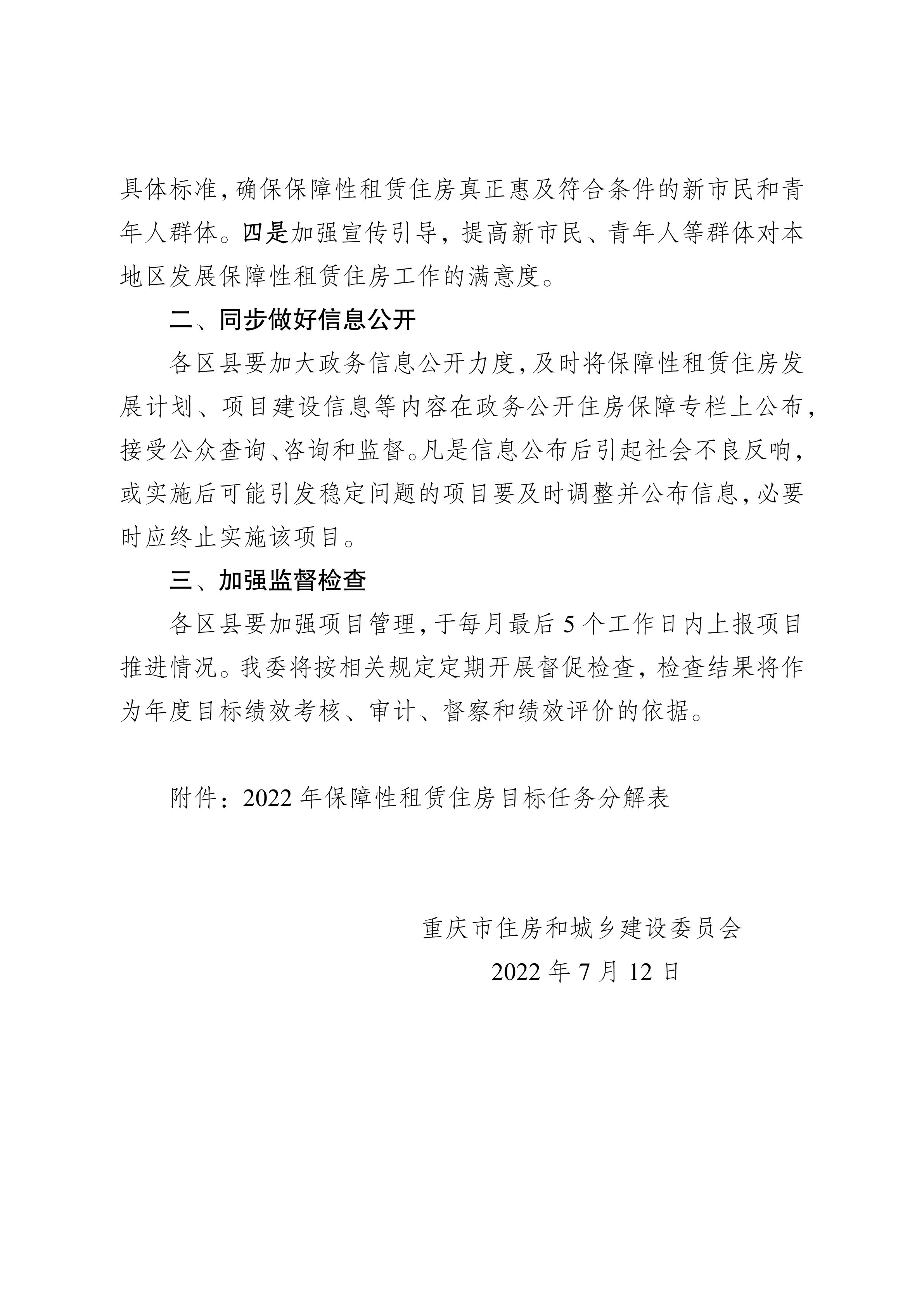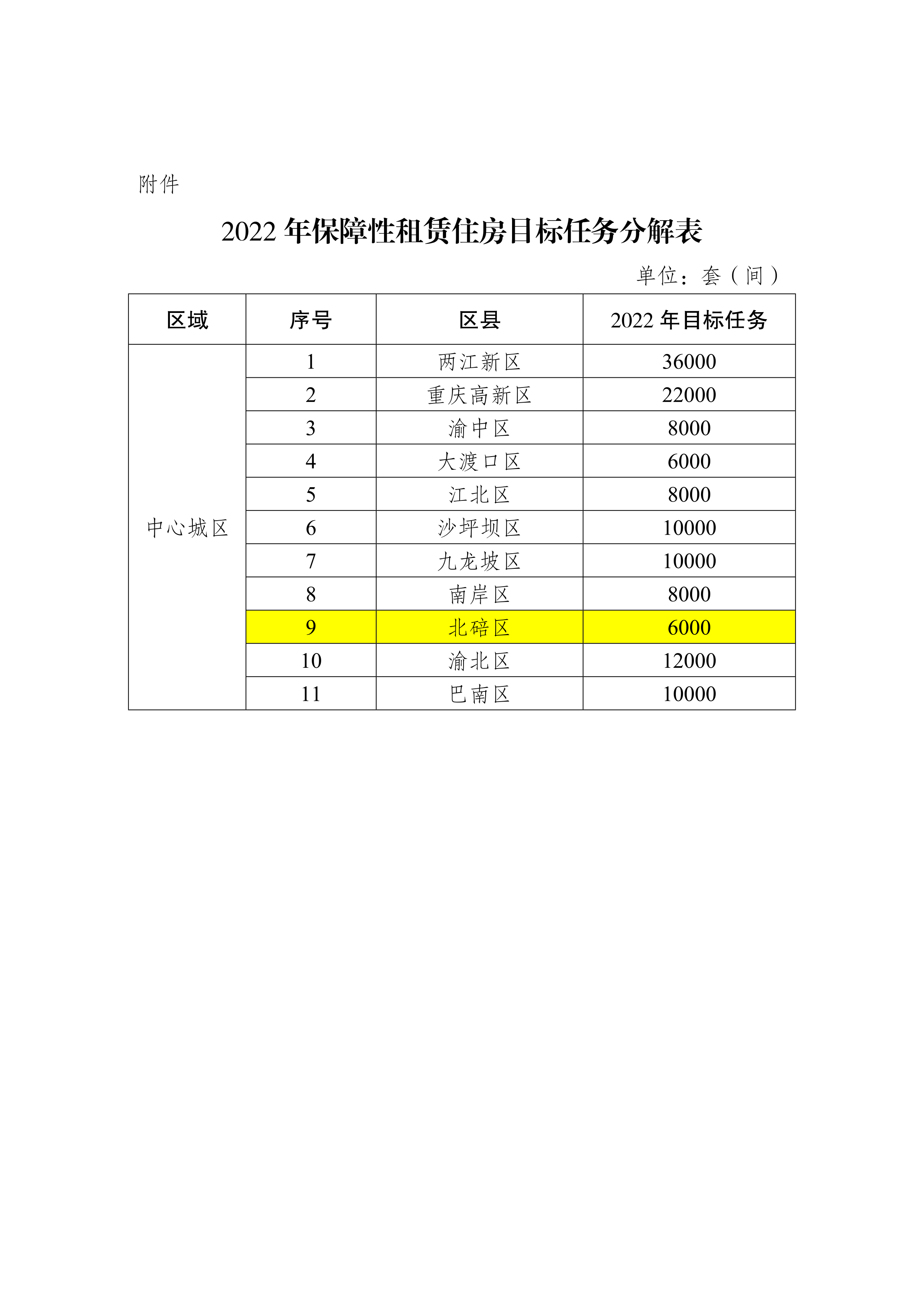 重庆市住房和城乡建设委员会关于分解下达2022年发展保障性租赁住房目标任务的函