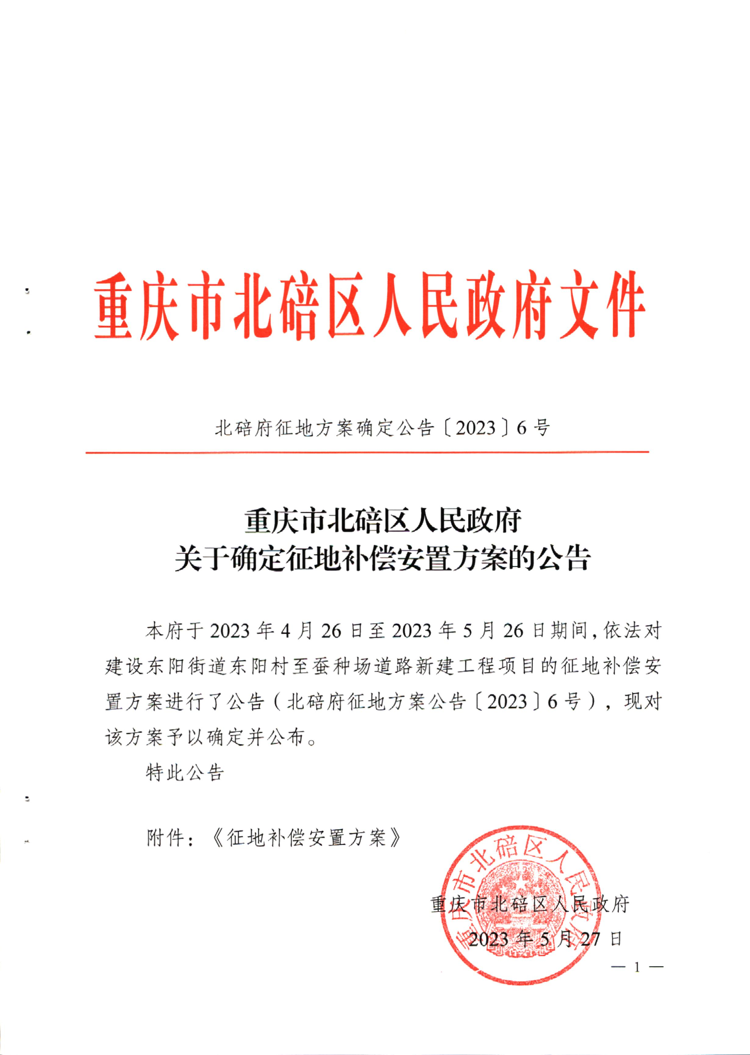 北碚府征地方案确定公告(2023)6号