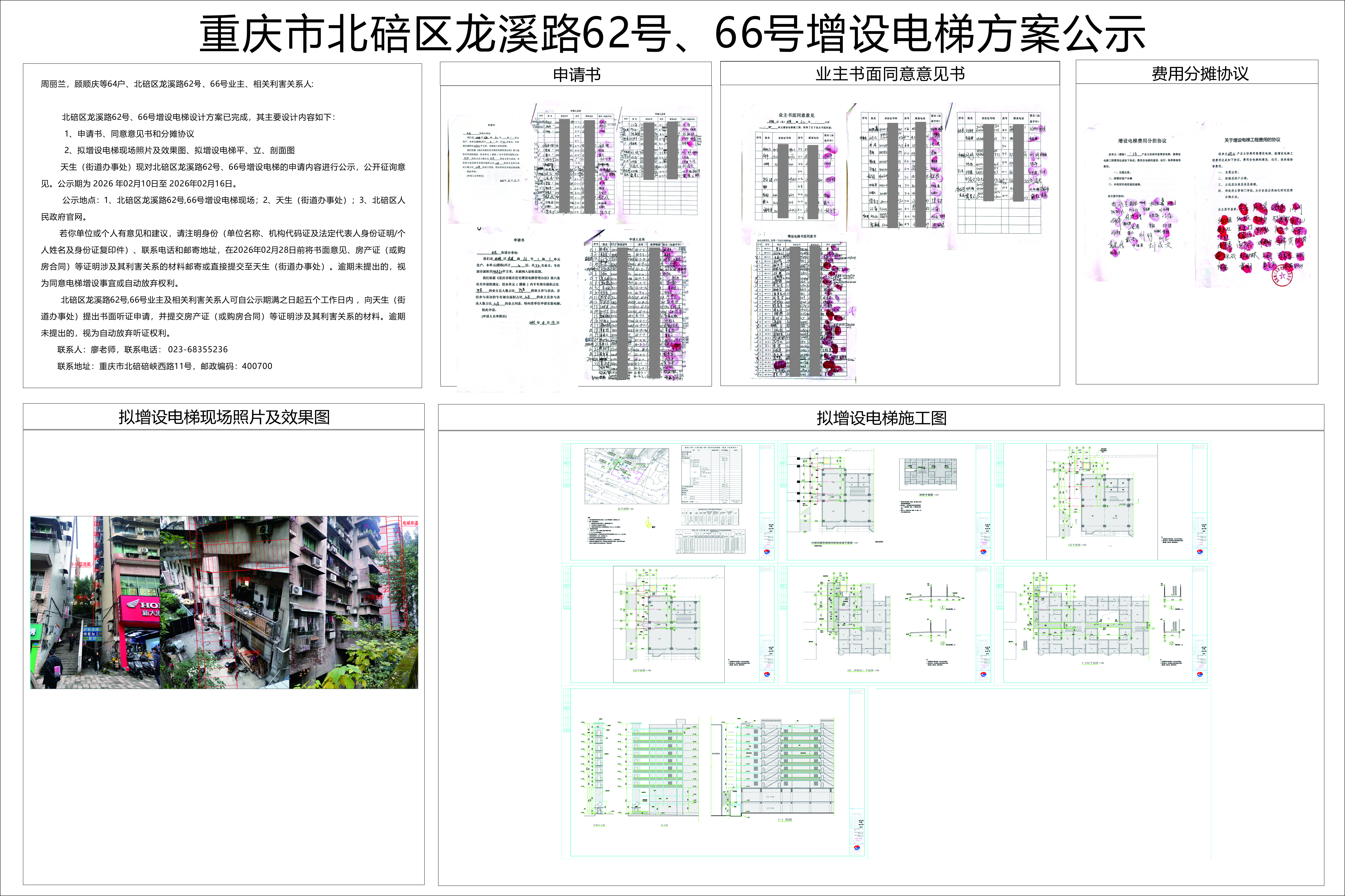 重庆市北碚区龙溪路62号、66号增设电梯方案公示