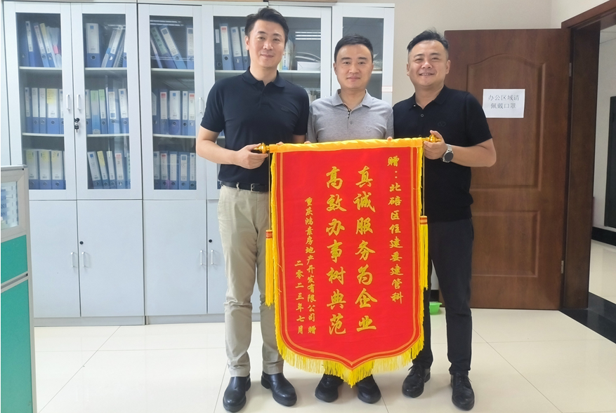 图为北碚区吾悦广场承建方送来锦旗