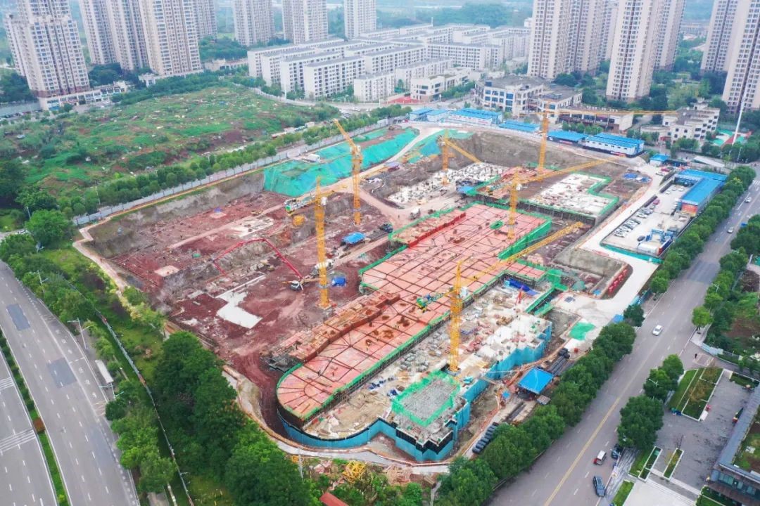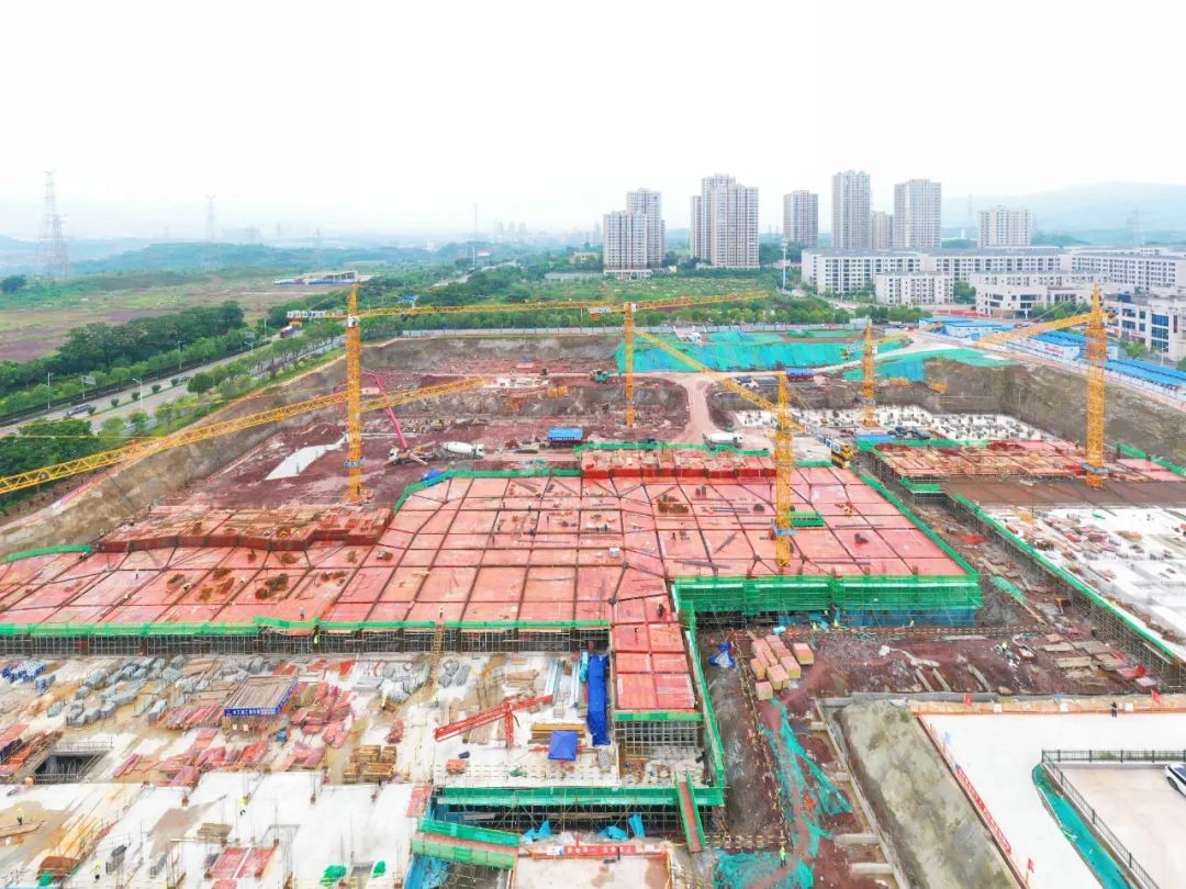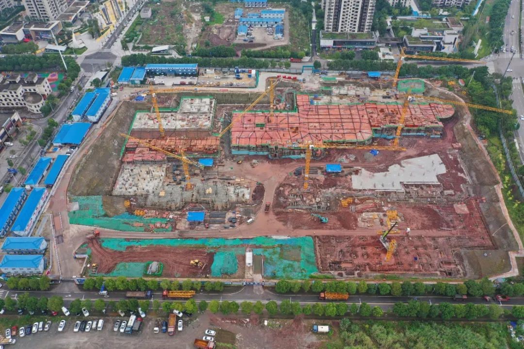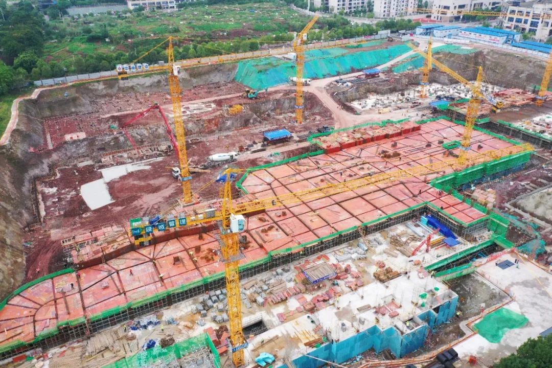 近日,水土新城国际人才社区项目施工现场,6台巨型塔吊挥舞长臂,不断将建筑材料运送至作业面,工地上机器轰鸣、工人来回穿梭,一派热火朝天的施工景象。