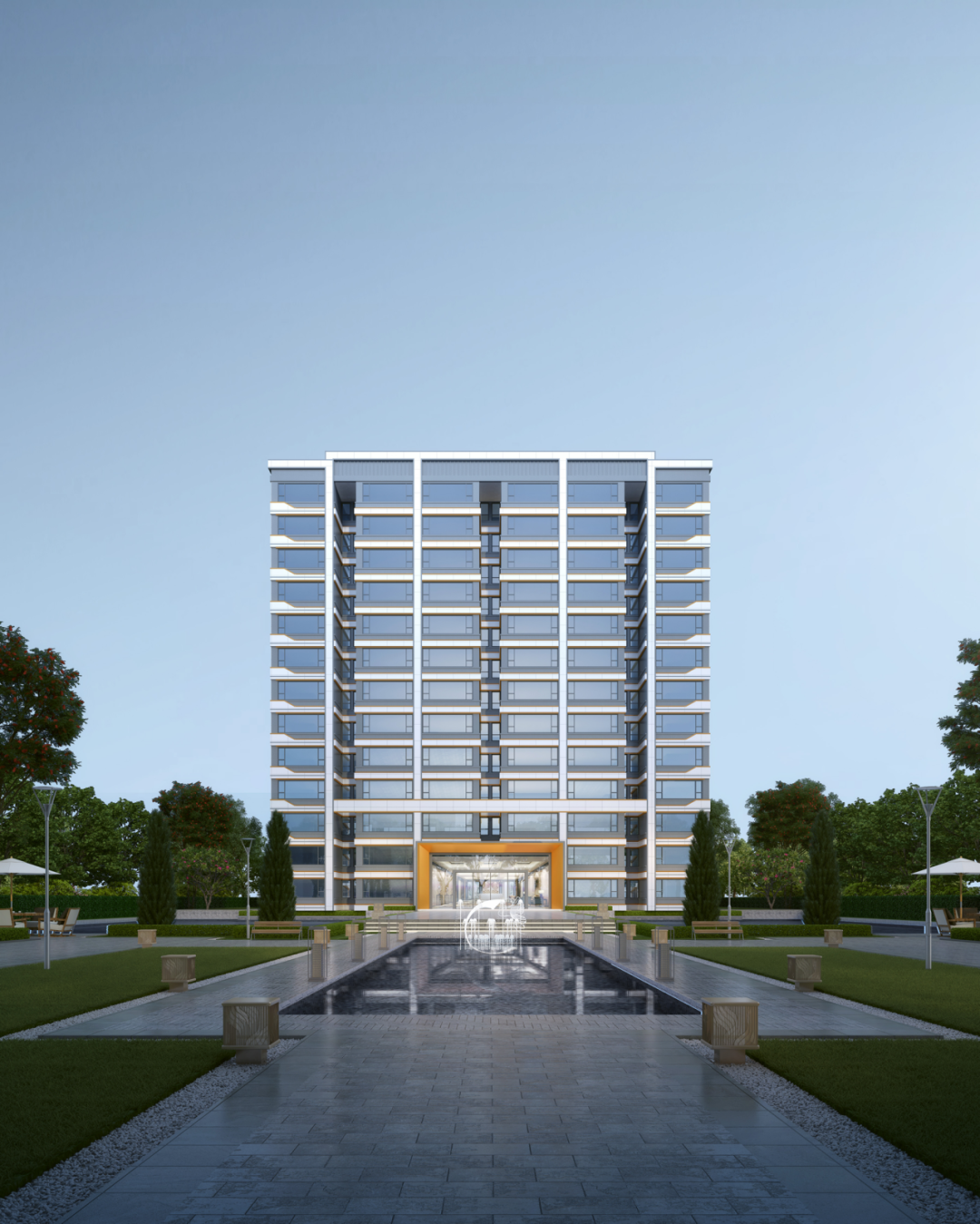 作为定位国际化、现代化的人才社区,项目建筑设计采用现代主义风格,运用形体、颜色的对比手法,突出挺拔俊秀的外形;顶部结构设计打破建筑体量的厚重感,极具艺术性与识别性,同时丰富了城市人文景观。