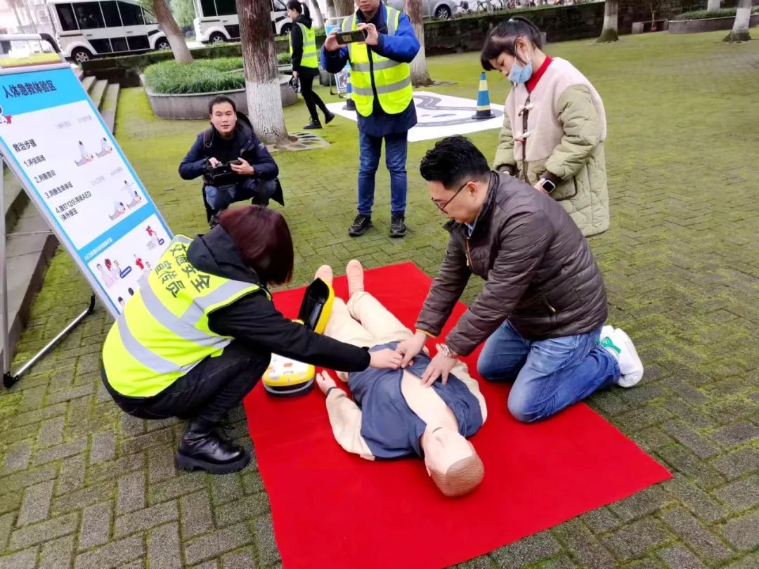 在体验环节,北碚区宣教基地交通安全志愿者在现场设置了车辆盲区体验、酒醉体验区域、人体急救模拟区域。通过邀请老师和学生坐进驾驶室,寻找躲在汽车盲区的人员,更直观地感受车辆盲区的位置及危害。通过让学生戴上酒醉VR体验眼镜,让他们身临其境般感受醉酒开车的危险。