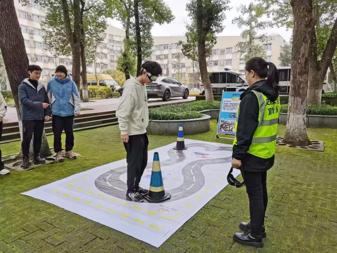 活动现场设置了知识宣讲、体验互动、现场咨询、有奖知识问答等环节,活动内容丰富,观众互动性强,吸引了众多师生的积极参与。民警从驾乘人员交通安全注意事项、应对交通事故的方法以及交通安全自我防护等方面,向师生们宣讲道路交通安全知识,引导师生认识到交通安全的重要性、提高交通安全风险防范能力。针对校园内两轮摩托车、电动车违法载人、超员、不戴头盔等交通违法行为,民警强调“一盔一带”在减轻交通事故伤害、保护生命安全方面的重要作用,并号召大家杜绝交通陋习,倡导文明出行。