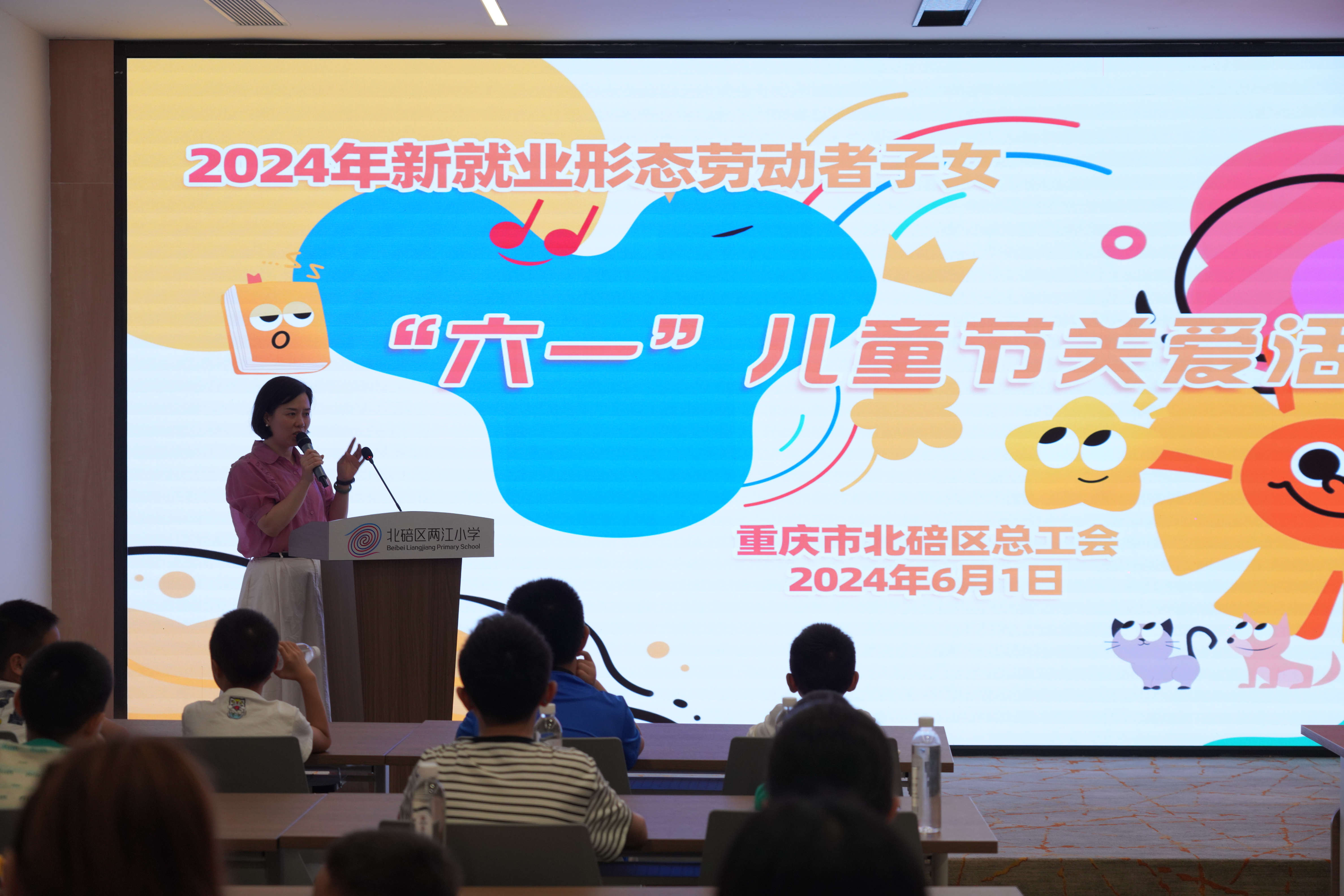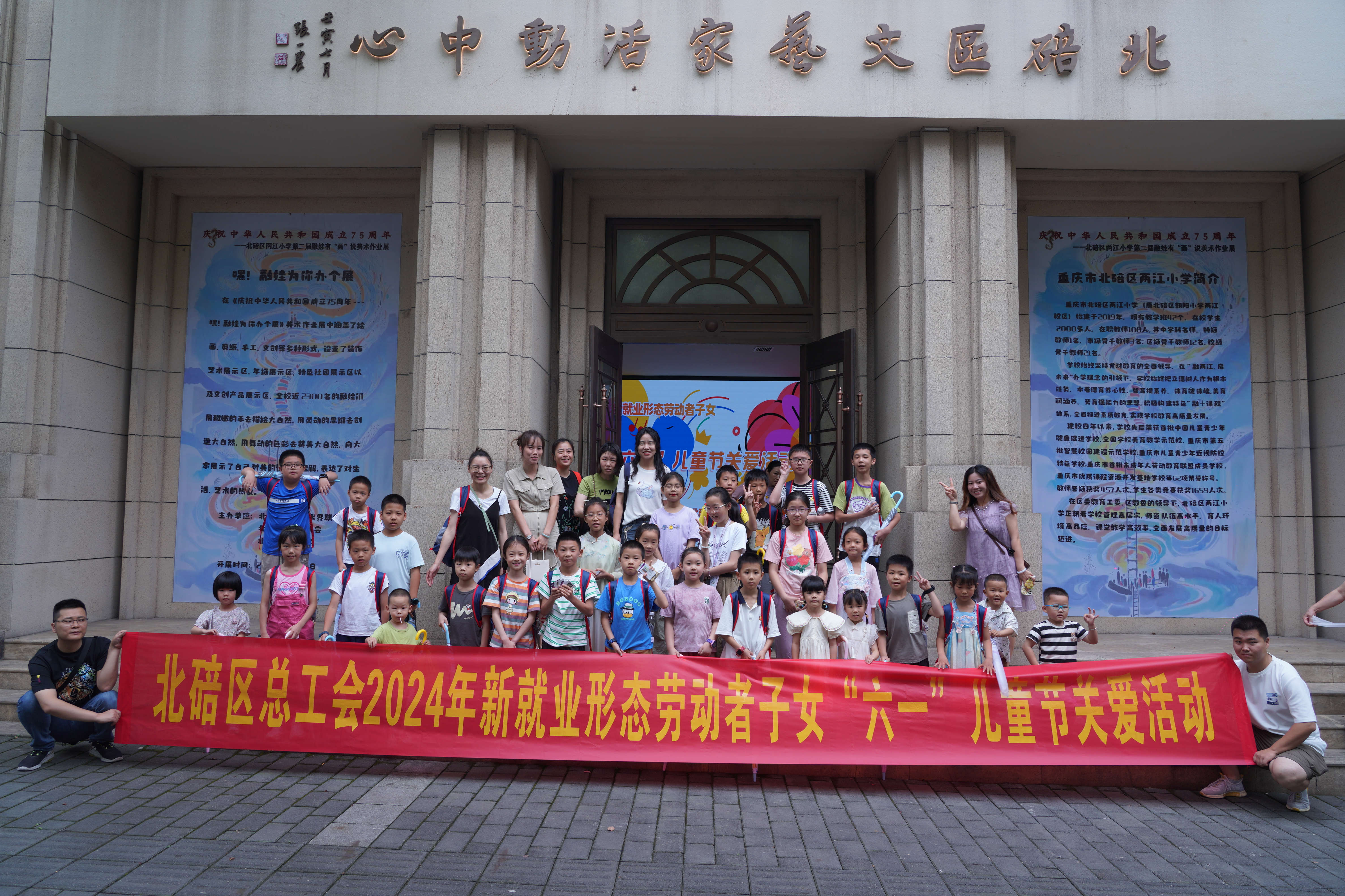 在“六一”儿童节来临之际,为进一步增强与新就业形态劳动者的紧密联系,6月1日,北碚区总工会组织美团、申通、中通、圆通等新就业形态劳动者及其子女共计60余人走进北碚区文艺家活动中心,为孩子们送上“六一”节日祝福。