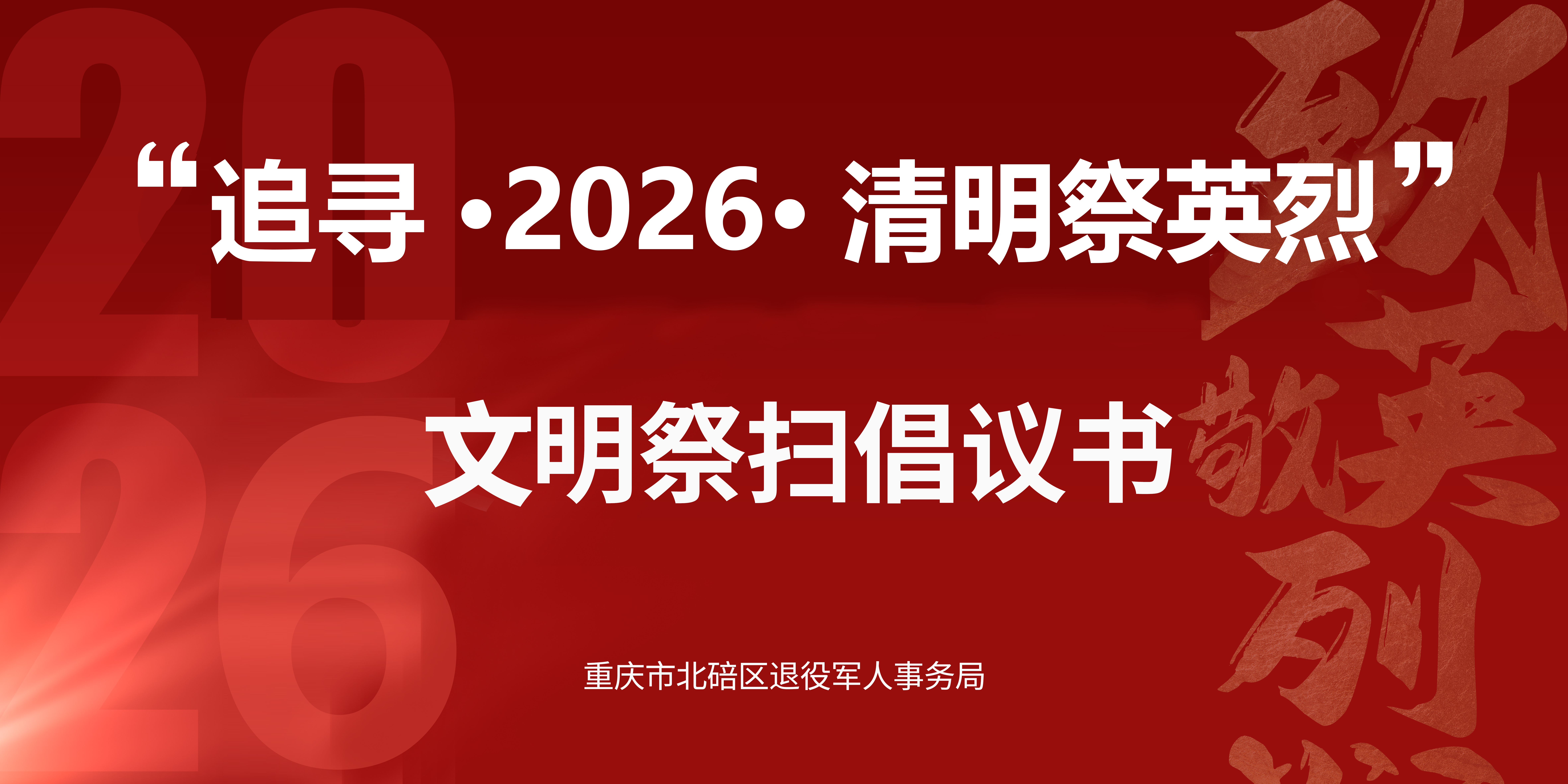 春风拂翠,松柏含悲;清明追思,英魂永铸。在中华民族传统节日——清明节来临之际,我们怀着无比崇敬的心情,深切缅怀为民族独立、人民解放、国家富强和人民幸福,抛头颅、洒热血、献出宝贵生命的革命先烈。他们用热血铸就忠诚,用生命捍卫信仰,是中华民族永远的精神丰碑。为深入贯彻《中华人民共和国英雄烈士保护法》,传承红色基因、赓续红色血脉、凝聚奋进力量,大力弘扬文明、绿色、安全、有序的祭扫新风尚,在此,我们向全社会发出“追寻·2026·清明祭英烈”文明祭扫倡议: