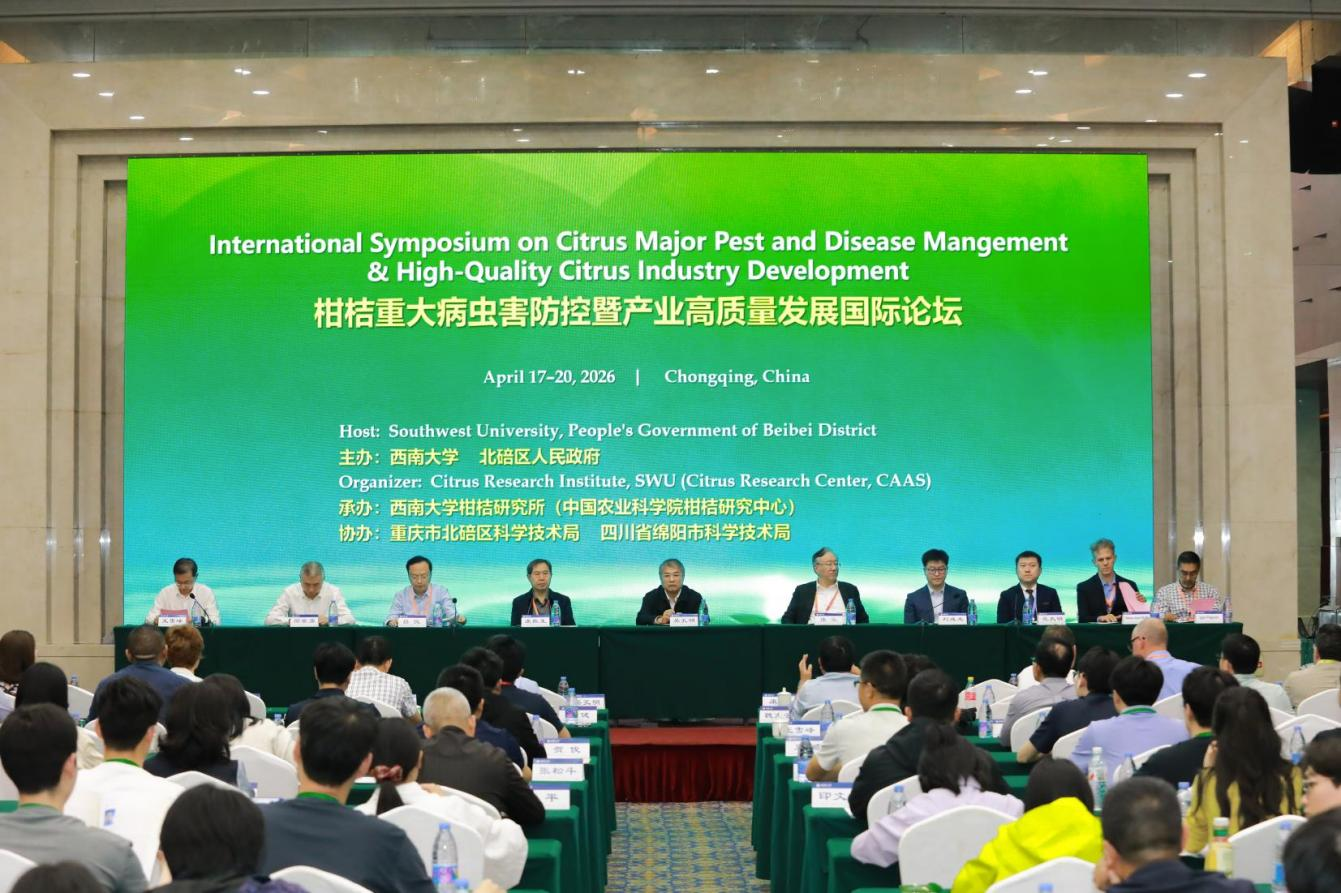 4月18—19日,柑桔重大病虫害防控暨产业高质量发展国际论坛在北碚举行。本次论坛由西南大学、北碚区人民政府主办,西南大学柑桔研究所(中国农业科学院柑桔研究中心)承办,重庆市北碚区科技局、四川省绵阳市科技局协办。中国农业科学院原院长、中国工程院院士吴孔明,中国科学院院士康乐,中国工程院院士陈剑平、康振生,重庆市科协副主席刘成龙,北碚区副区长吕俊,西南大学副校长范大明等出席开幕式。来自中国、澳大利亚、巴西、南非、意大利、黑山等国家的知名病虫害防控专家、学者及行业组织代表等150余人参加。